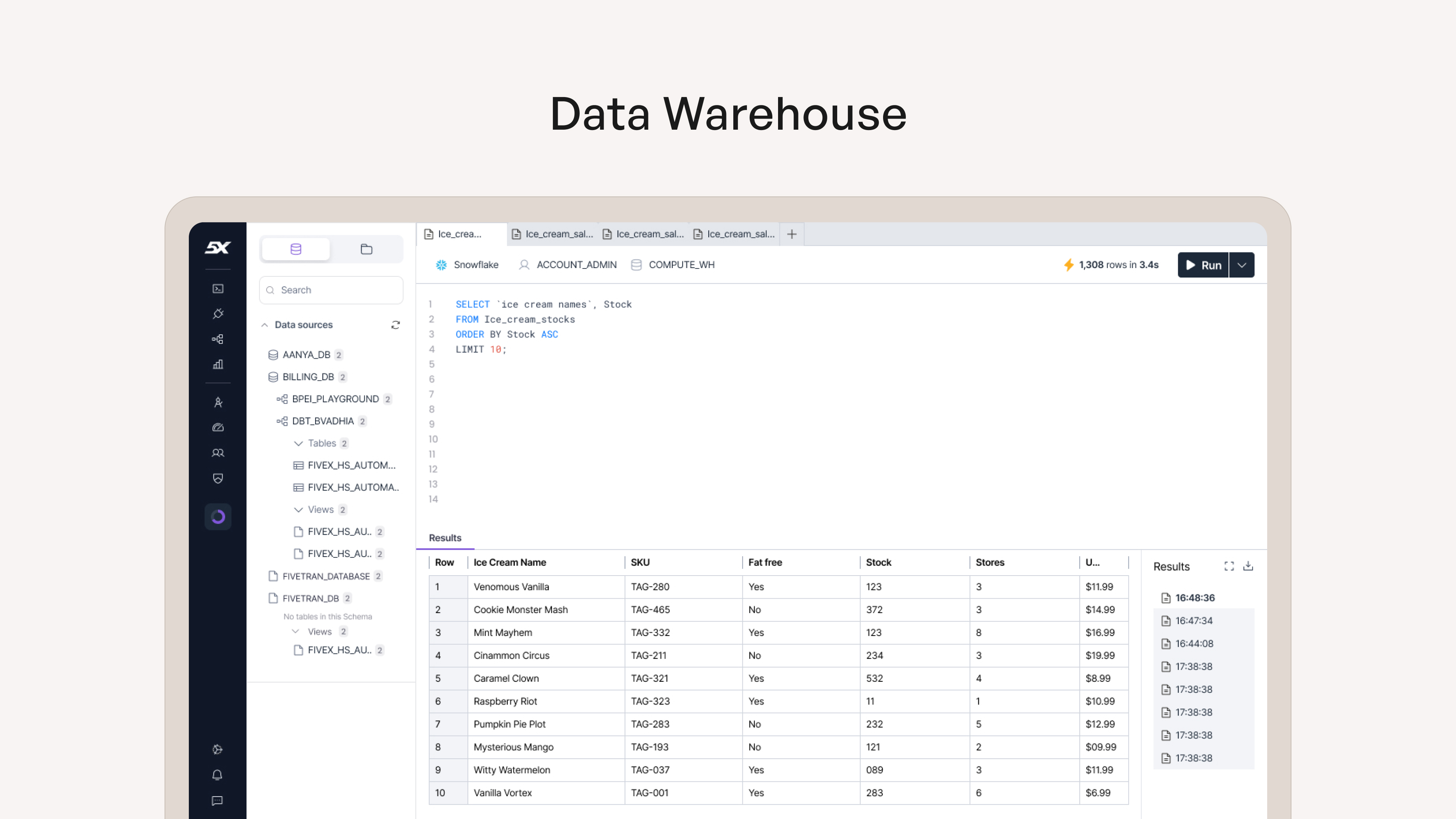Das 5X-Team war während des gesamten Prozesses der Umwandlung der Rohdaten unseres Unternehmens in ein strukturiertes und aufschlussreiches Modell äußerst verantwortungsbewusst und unterstützend. Die Plattform selbst ist benutzerfreundlich und integriert nahtlos sowohl die IDE- als auch die BI-Umgebungen. Insgesamt haben sowohl das Produkt als auch das Team eine entscheidende Rolle dabei gespielt, unserem Startup zu helfen, datengetriebener und reifer zu werden. Bewertung gesammelt von und auf G2.com gehostet.