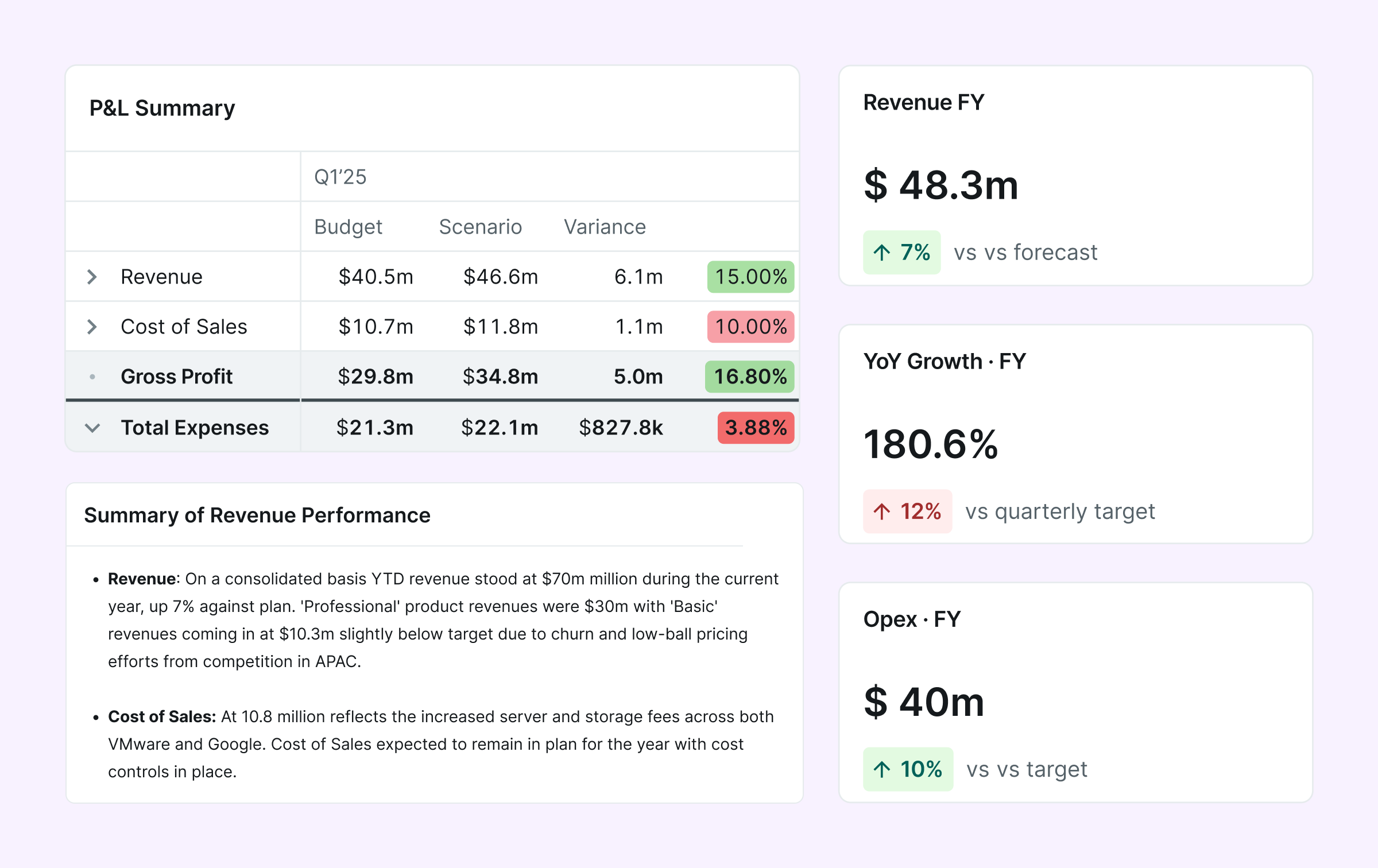 Abacum bietet enorme Flexibilität in Bezug auf seine Daten- und Analysefähigkeiten. Die Möglichkeit, benutzerdefinierte Metriken und Datenumwandlungen direkt im Datensatz zu erstellen, hat es uns ermöglicht, die komplexen Pipeline-Anforderungen unseres Führungsteams zu automatisieren. Wir haben zuvor versucht, unsere benutzerdefinierten Pipeline-Berichtsmetriken direkt in Salesforce (Tableau) und Mosaic zu erstellen, waren jedoch nicht in der Lage dazu. Abacum veröffentlicht Produktverbesserungen schneller als jede andere Softwareplattform, die ich je gesehen habe - es ist nicht ungewöhnlich, dass sie ein oder zwei Produktupdates pro Woche herausbringen - und bietet mehr Integrationen mit modernen Technologiewerkzeugen als seine Konkurrenten. Wir haben im vergangenen Jahr unseren Finanztechnologie-Stack komplett überarbeitet, einschließlich der Migration unseres ERP, und haben uns teilweise aufgrund der Integration mit Rillet für Abacum entschieden. Schließlich ist der Excel-Connector von Abacum einzigartig unter strategischen Finanzplattformen und ermöglicht es Teams, hybride Workflows sowohl in Excel als auch in Abacum aufrechtzuerhalten. Bewertung gesammelt von und auf G2.com gehostet.