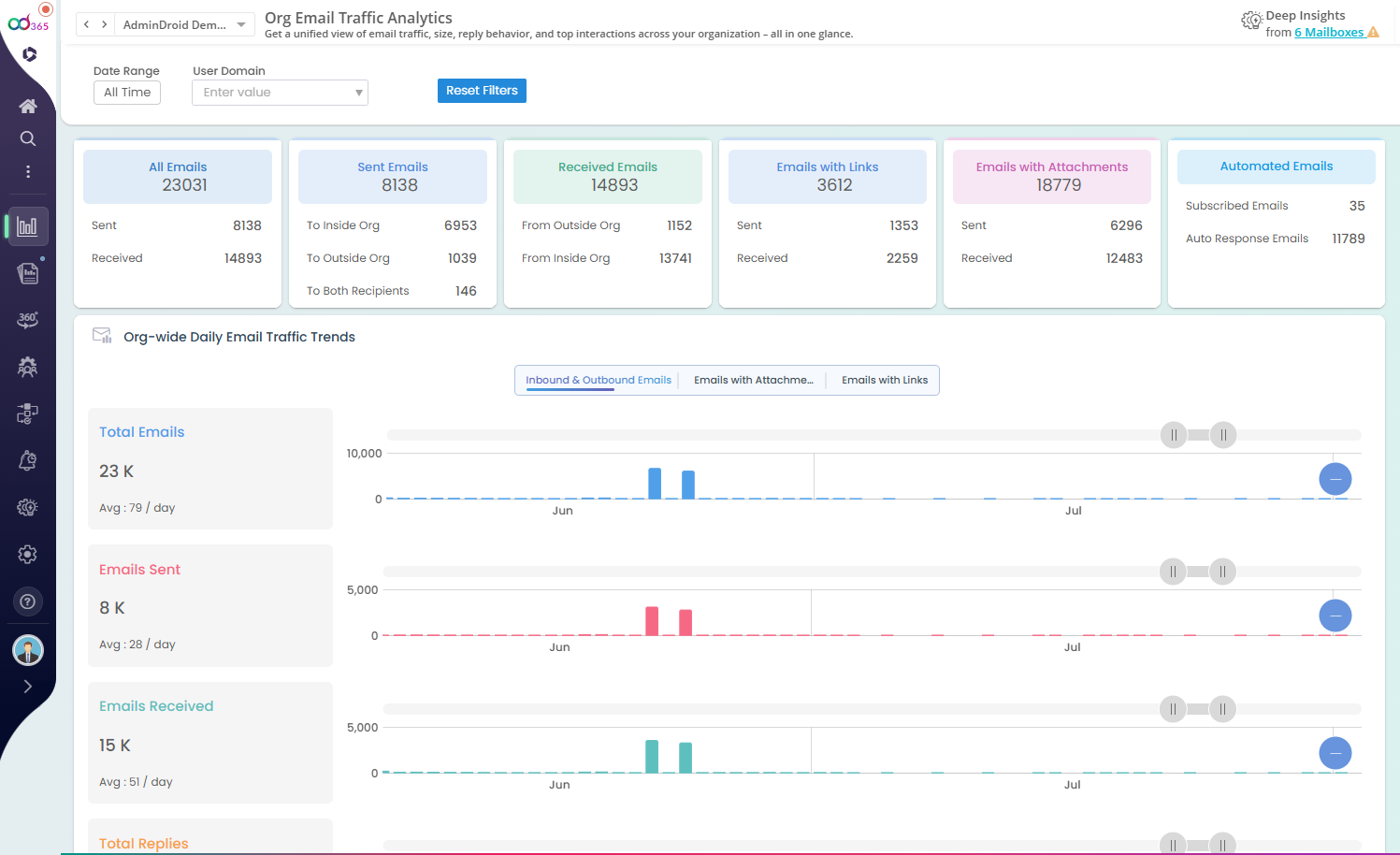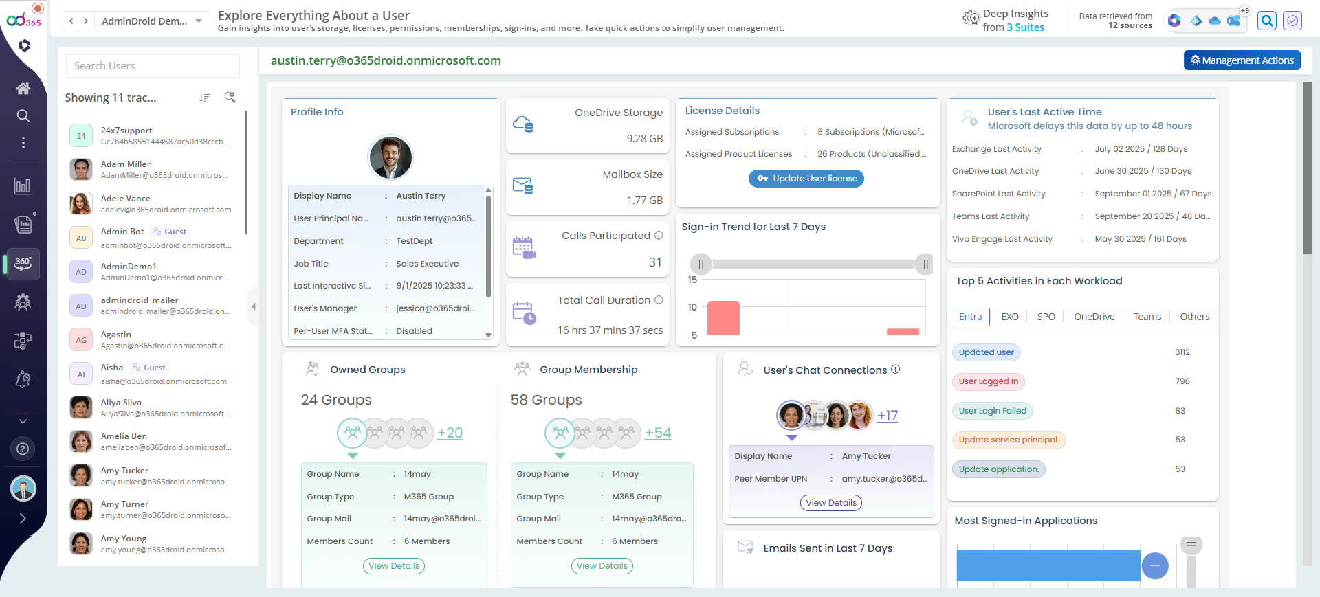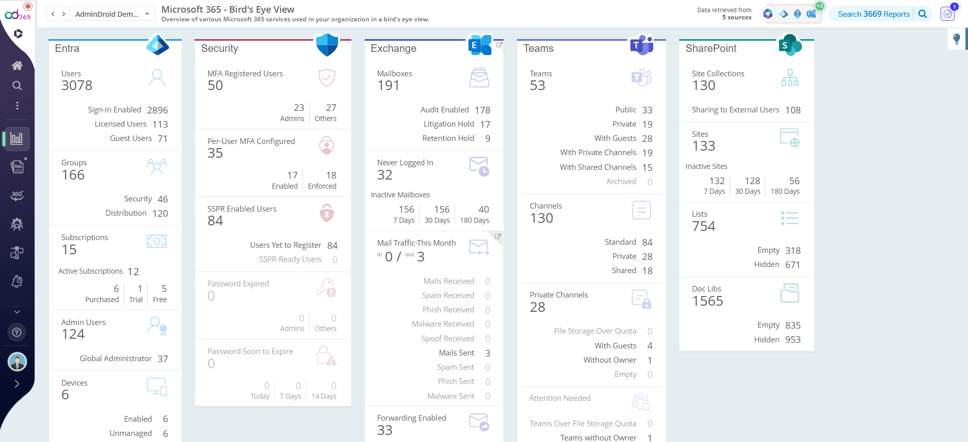 AdminDroid 365 bringt Ihre gesamte Microsoft 365- und Active Directory-Umgebung auf eine leistungsstarke Management-Plattform.