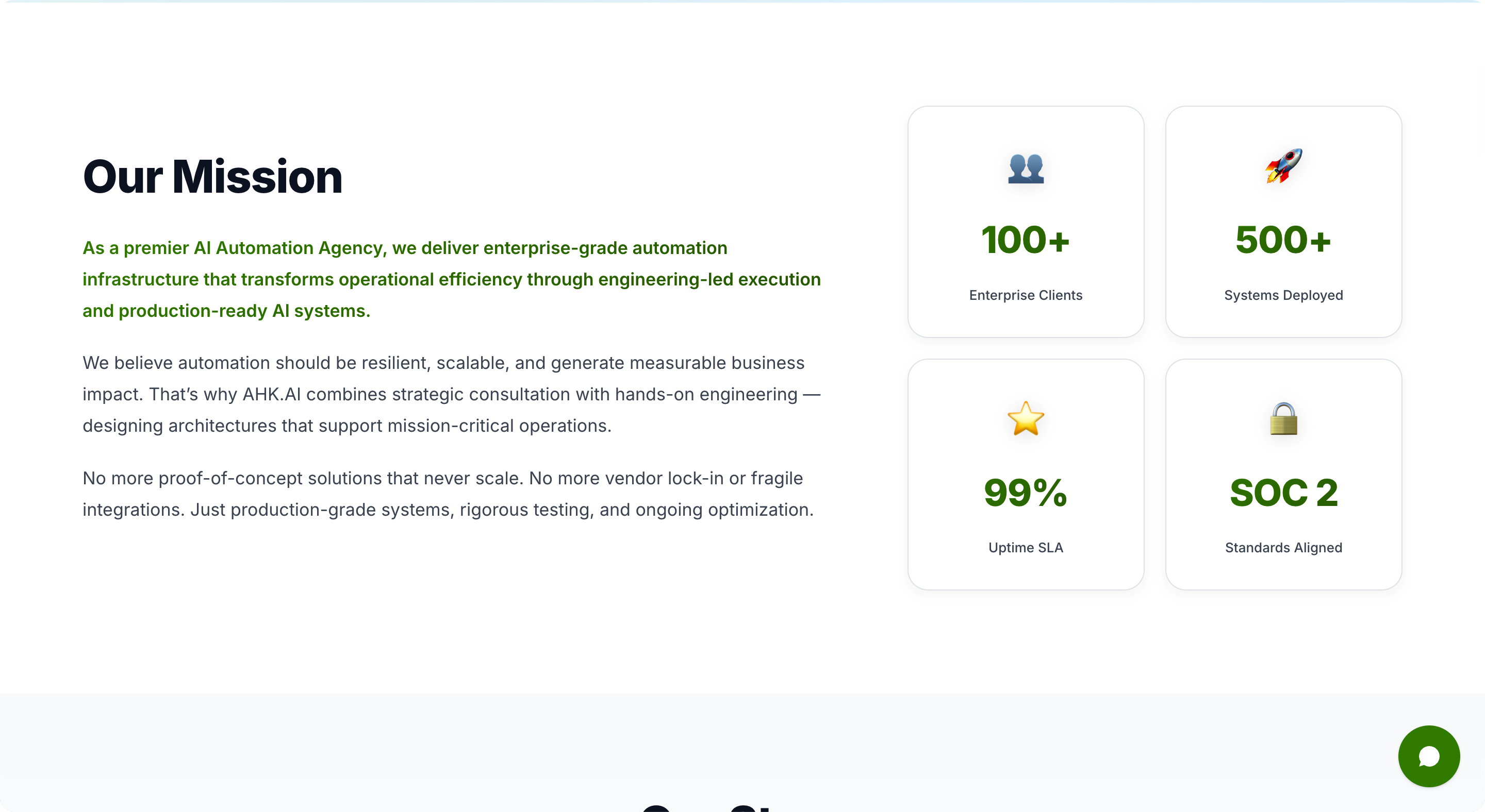 Viele Organisationen erkunden KI durch isolierte Tools, Demos oder Machbarkeitsstudien, die nie in die Produktion gelangen. AHK.AI wurde gegründet, um diese Lücke zu schließen. Wir helfen Unternehmens-Teams, von der Experimentierphase zu zuverlässigen, skalierbaren KI-Systemen zu gelangen, die messbare Geschäftsergebnisse liefern.