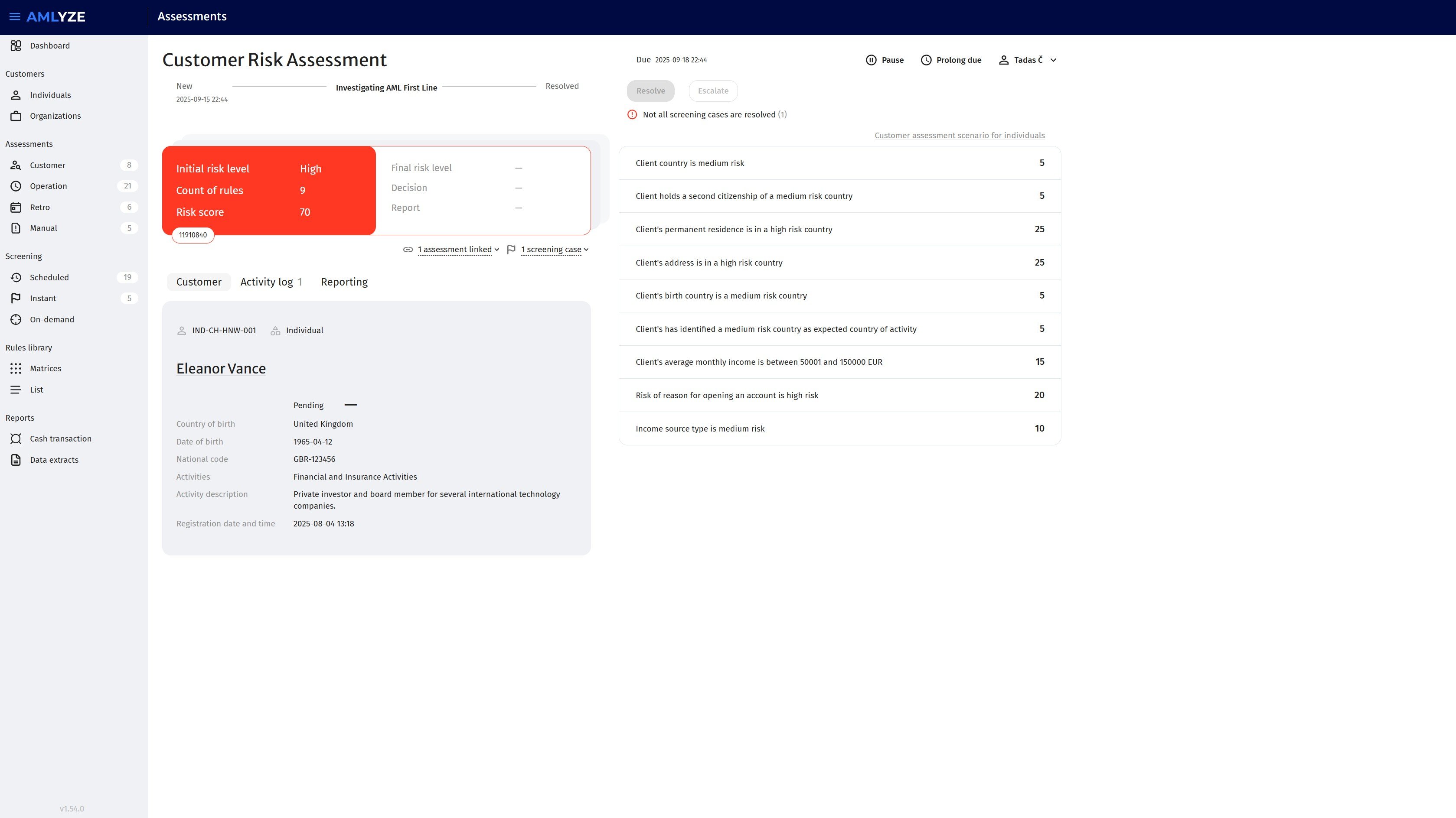 Was mir an AMLYZE am meisten gefällt, ist, dass es ein sehr umfassendes und effizientes Werkzeug ist, sobald man sich damit vertraut gemacht hat. Die Plattform bringt alle notwendigen AML-Funktionen an einen Ort, was Untersuchungen und Überprüfungen erheblich beschleunigt. Das System ist stabil, die Daten sind gut strukturiert, und der gesamte Arbeitsablauf wird reibungslos, nachdem man die Logik hinter der Benutzeroberfläche verstanden hat. Auch wenn die Website anfangs groß erscheint, ist die angebotene Funktionalität wirklich stark und sehr hilfreich im täglichen Betrieb. Bewertung gesammelt von und auf G2.com gehostet.