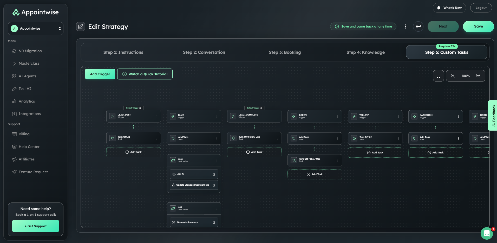 - Benutzerdefinierte Aufgaben & Automatisierung: Konfigurieren Sie die KI, um CRM-Felder zu aktualisieren, Tags hinzuzufügen, Workflows auszulösen und komplexe Geschäftsprozesse zu orchestrieren