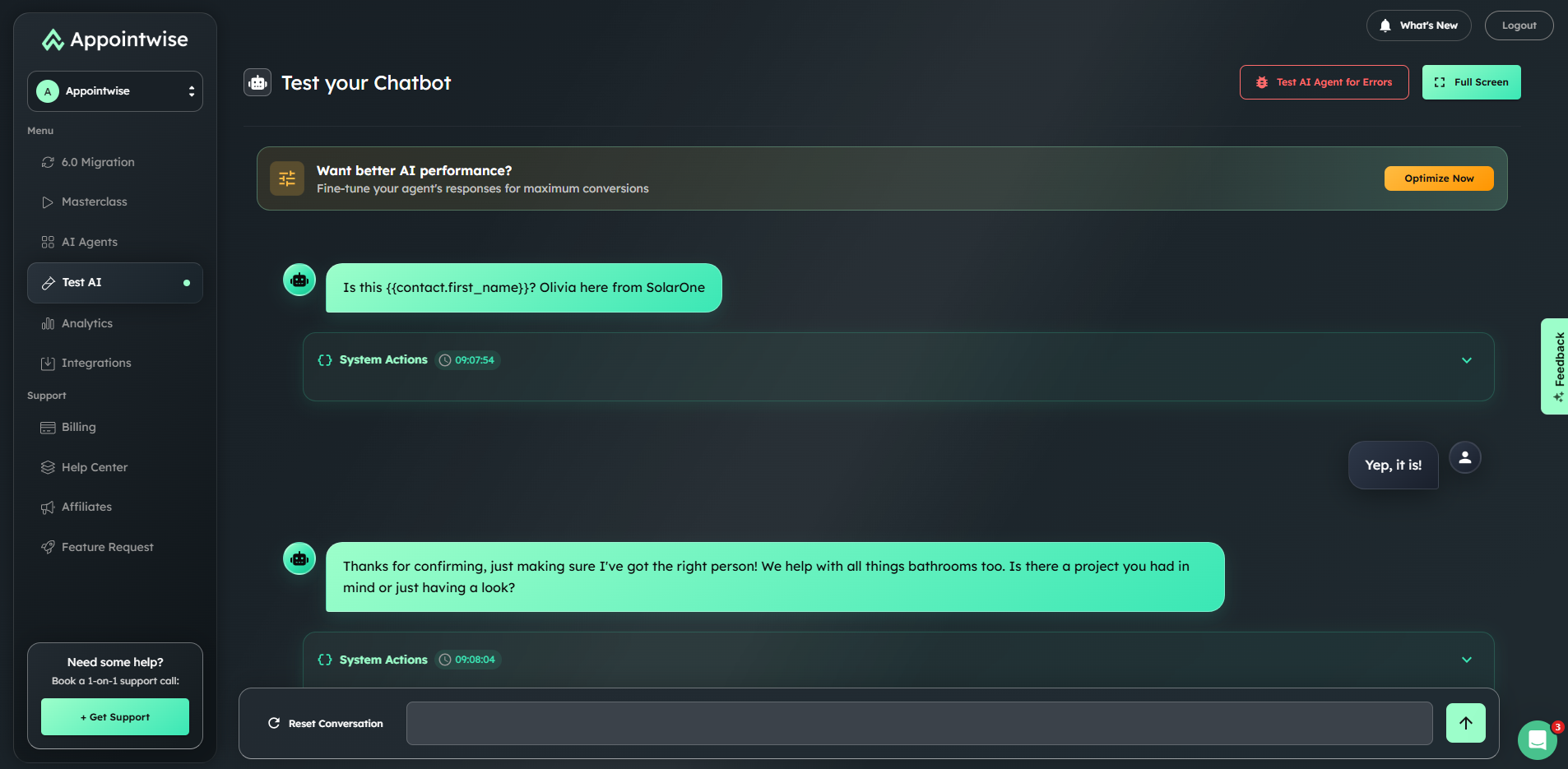 Im Gegensatz zu generischen KI-Plattformen ist Appointwise speziell für fortgeschrittene Verkaufsumgebungen entwickelt, in denen jeder Lead zählt. Unsere konversationelle KI reagiert nicht nur auf Nachrichten - sie verkauft aktiv, qualifiziert und bucht Termine durch ausgeklügelte mehrstufige Gespräche, die sich wirklich menschlich anfühlen.