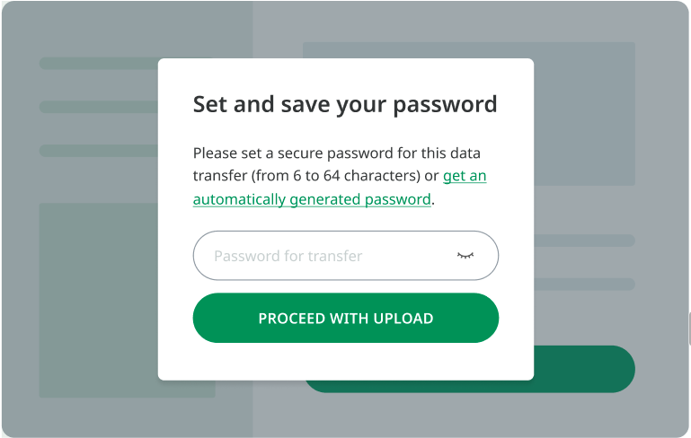 Filewhopper ermöglicht es, Dateien mit einem Passwort zu verschlüsseln. Dies stellt sicher, dass nur autorisierte Empfänger Zugriff auf die Dateien haben.