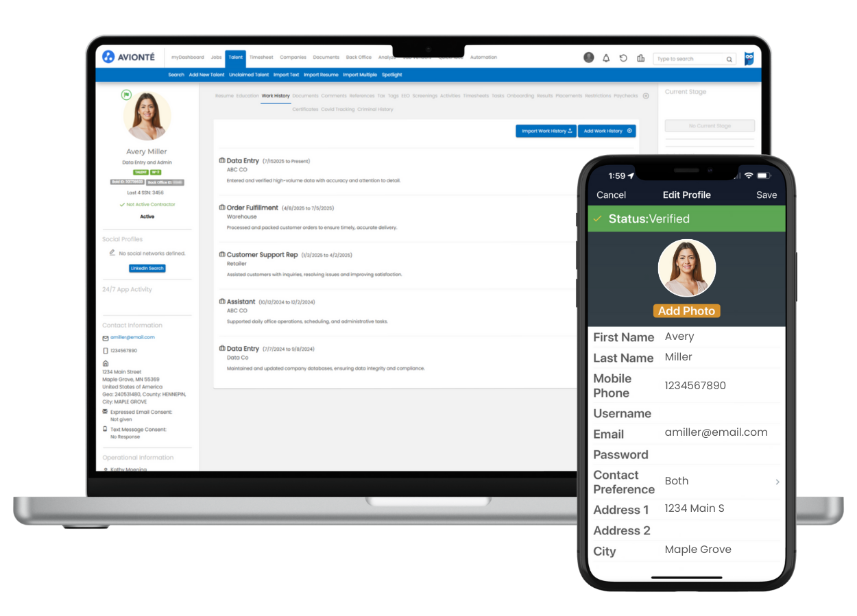 Die Avionte-Software ist ein integraler Bestandteil unseres Unternehmens. Hier wird alles vom Front Office bis zum Back Office verarbeitet und täglich von allen Nutzern in unserem Unternehmen verwendet. Die Integrationen mit anderen Anwendungen sind sehr vorteilhaft, um interne und externe Prozesse zu optimieren. Wir haben einen engagierten Kundenbetreuer, der erreichbar und aufmerksam auf unsere Bedürfnisse und Geschäftsbedingungen ist. Wie bei jeder Softwareimplementierung gibt es Stressfaktoren und Widerstand gegen Veränderungen. Das war unser größtes Hindernis: unsere internen Nutzer dazu zu bringen, das System effizient und effektiv zu nutzen, wie vorgesehen, und dabei unsere unternehmensspezifischen Workflows zu befolgen, die als Best Practices erstellt wurden, um die größtmögliche Effizienz zu gewährleisten. Wir schätzen unsere Partnerschaft mit dem Avionte-Team und sehen sie als eine Erweiterung unseres Unternehmens. Bewertung gesammelt von und auf G2.com gehostet.