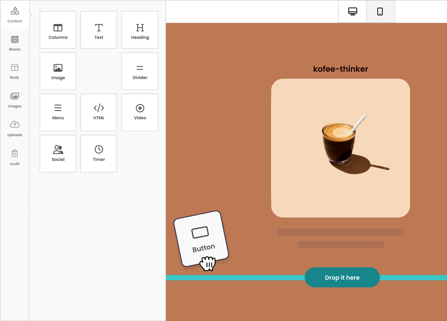 • Drag-and-Drop-E-Mail-Builder: Entwerfen Sie professionelle, mobilfreundliche E-Mails ohne Programmier- oder Designkenntnisse. Wählen Sie aus einer kuratierten Vorlagenbibliothek und passen Sie jedes Detail mit flexiblen Inhaltsblöcken an.