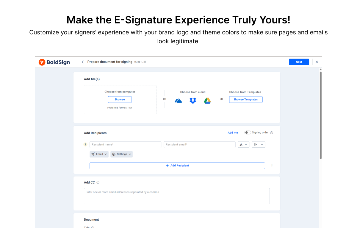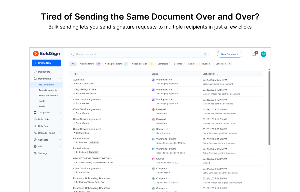 Einfach zu bedienen!!! Ich habe mehrere Vorlagen, ich kann bei Bedarf E-Signatur-Anfragen per Text senden. Ich kann mehrere Benutzer haben. Es ist einfach einzurichten. Der Kundensupport war großartig! Ich nutze diese Plattform fast täglich! Ich würde diese Plattform jedem empfehlen, der E-Signatur-Funktionen benötigt. Ich habe es noch nicht integriert, werde es aber bald tun, und es sieht so aus, als wäre das einfach genug. Bewertung gesammelt von und auf G2.com gehostet.