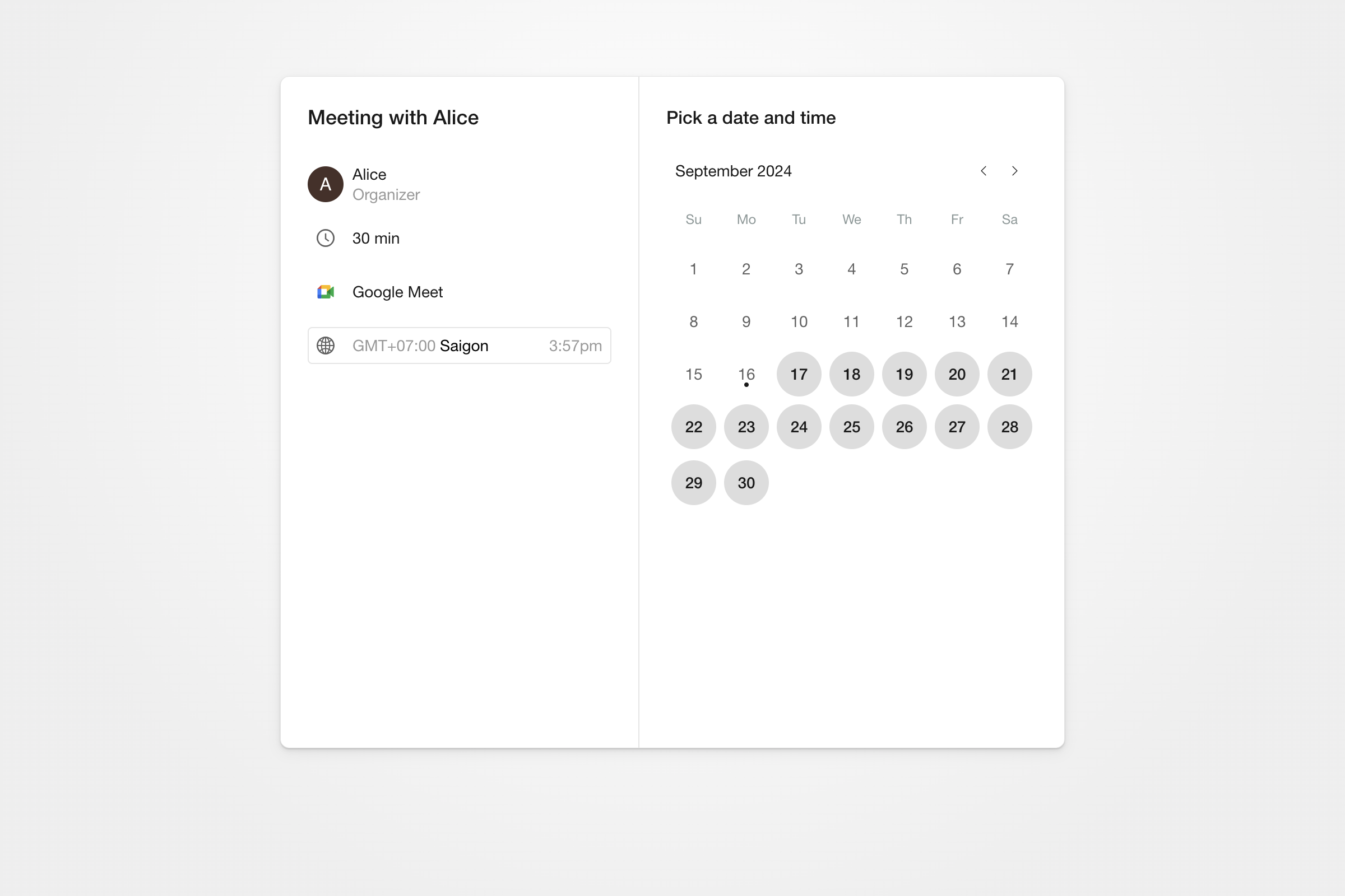 Einfaches, schönes Planen. Verabschieden Sie sich von Telefon- und E-Mail-Pingpong, um die perfekte Zeit zu finden.