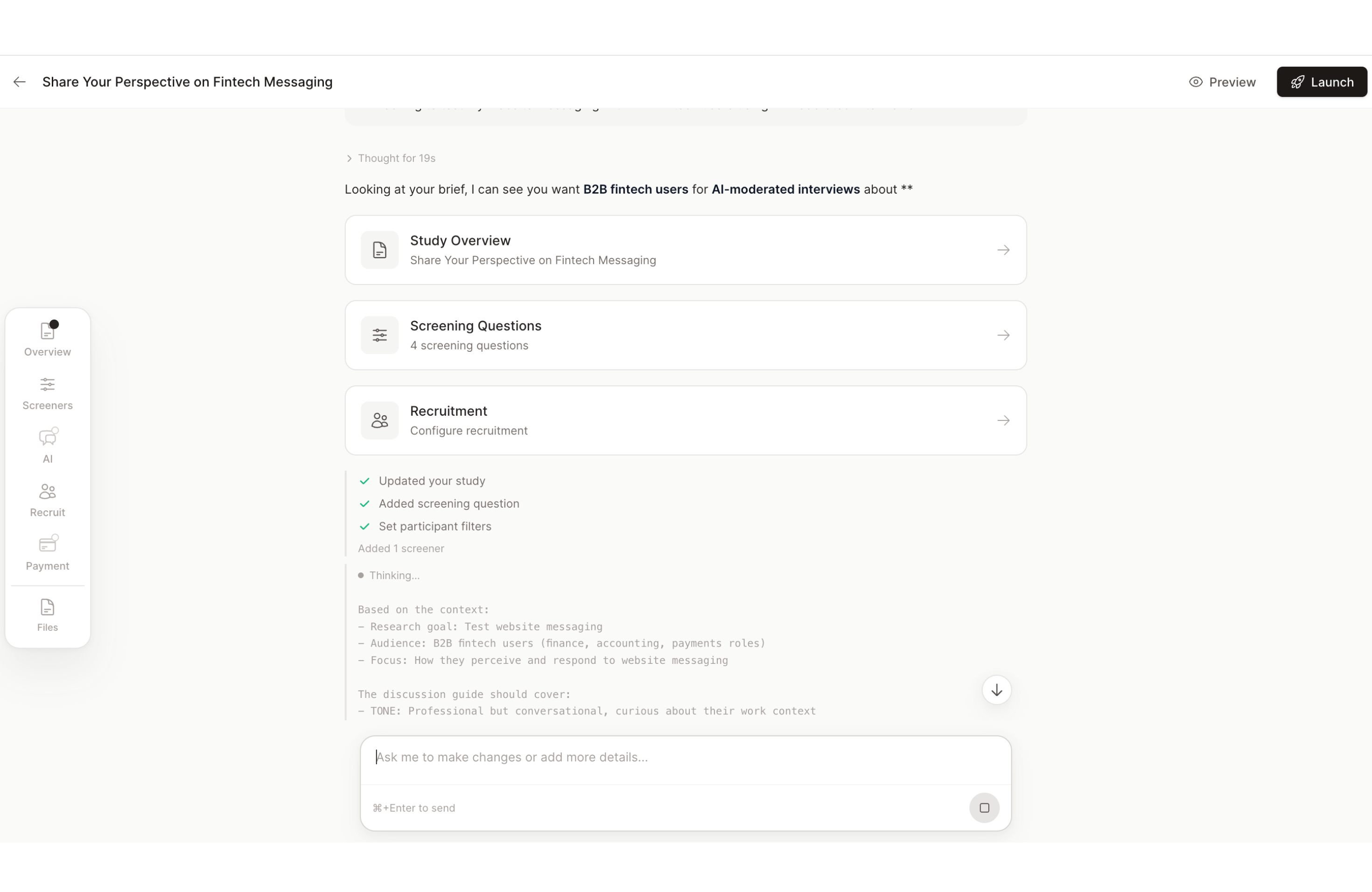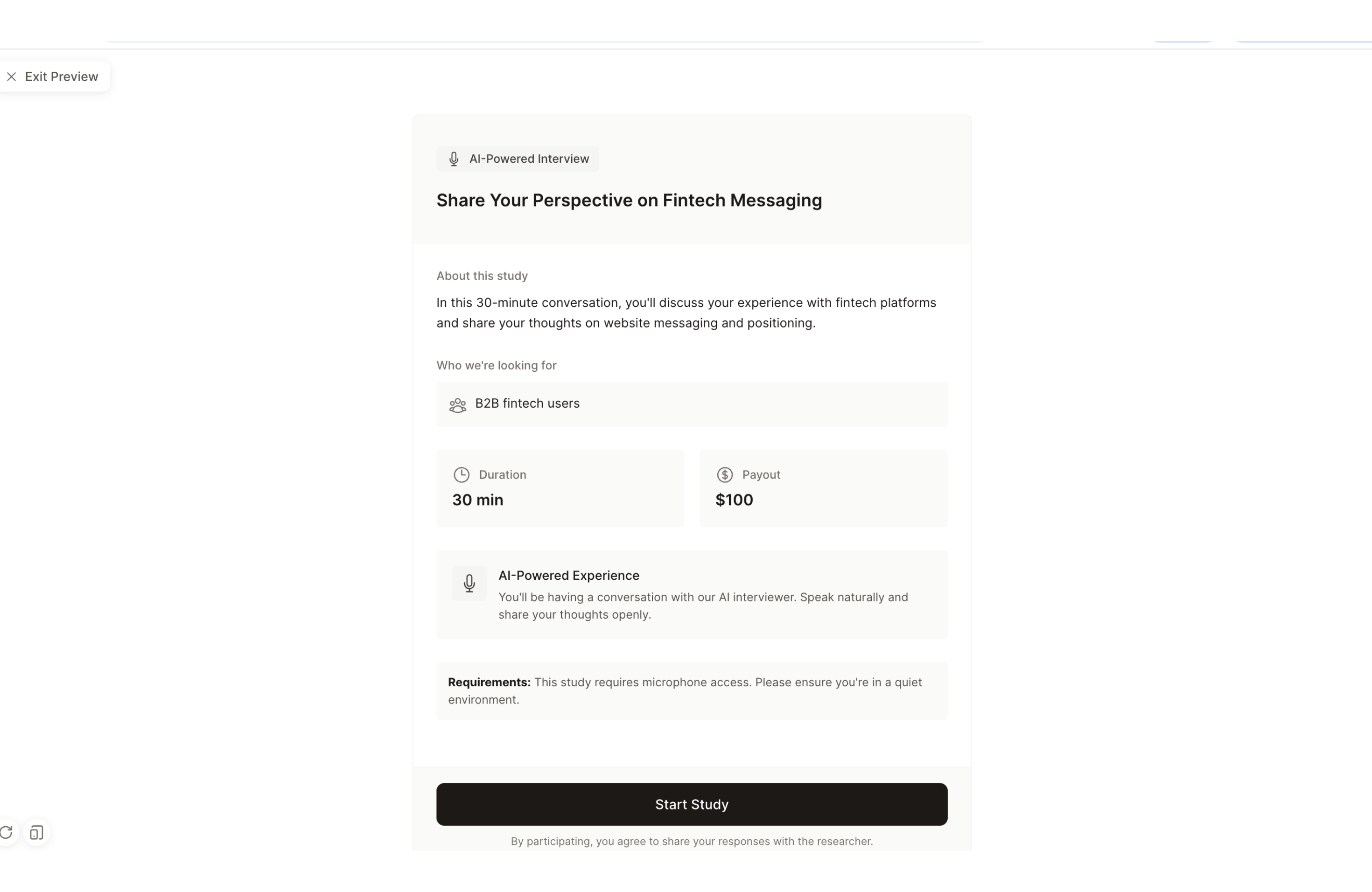 Ich habe großartige Erfahrungen mit CleverX bei Kundenforschungsstudien gemacht. Ihre Kommunikation ist immer klar, die Forschungsthemen sind relevant und der Prozess verläuft reibungslos von Anfang bis Ende. Ich schätze, wie professionell sie jede Sitzung leiten und wie ernst sie die Einsichten der Teilnehmer nehmen. Es fühlt sich an, als ob mein Feedback wirklich die Geschäftsentscheidungen beeinflusst. Ich kann CleverX jedem empfehlen, der an durchdachten, gut durchgeführten Studien teilnehmen möchte. Bewertung gesammelt von und auf G2.com gehostet.
