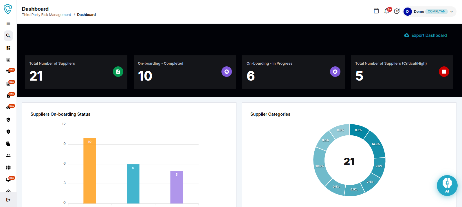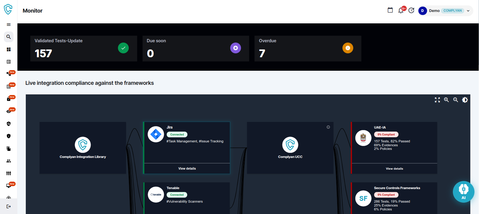 - Kontinuierliche Überwachung und Warnungen: Bietet Echtzeit-Tracking des Compliance-Status und benachrichtigt Benutzer umgehend über Probleme, um die kontinuierliche Einhaltung der regulatorischen Anforderungen sicherzustellen.