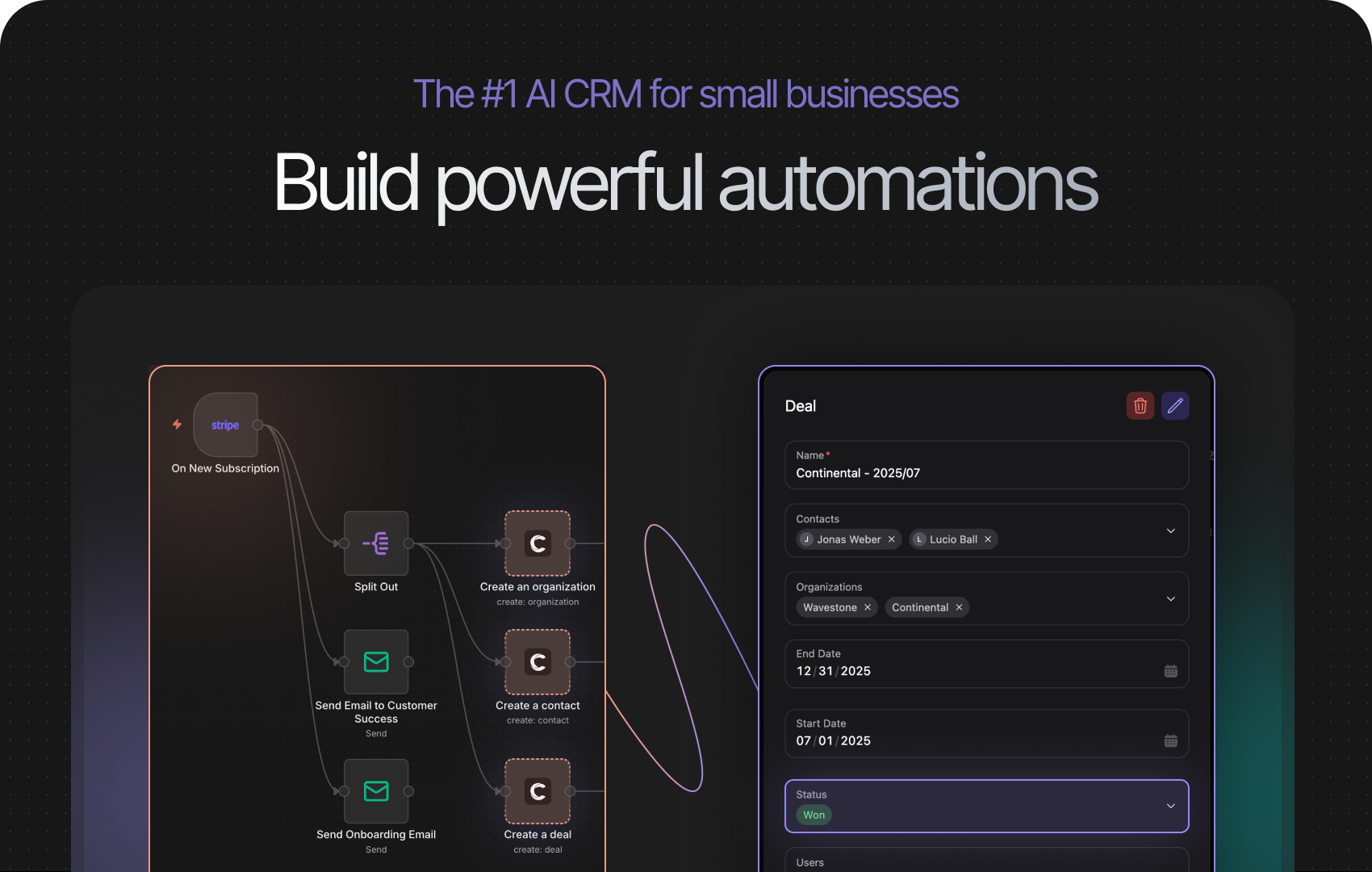 ActiveCampaign bietet mühelose E-Mail- und Marketing-Automatisierung. Wachsen Sie Ihr Geschäft mit KI-gestützten Automatisierungen, die Ihre Marketingkampagnen vorschlagen, personalisieren und validieren. Mit Hunderten von Automatisierungsauslösern und -aktionen, bedingter Weiterleitung und einem KI-gestützten Drag-and-Drop-Builder können Sie tiefere Automatisierungen als die Konkurrenz schneller erstellen.