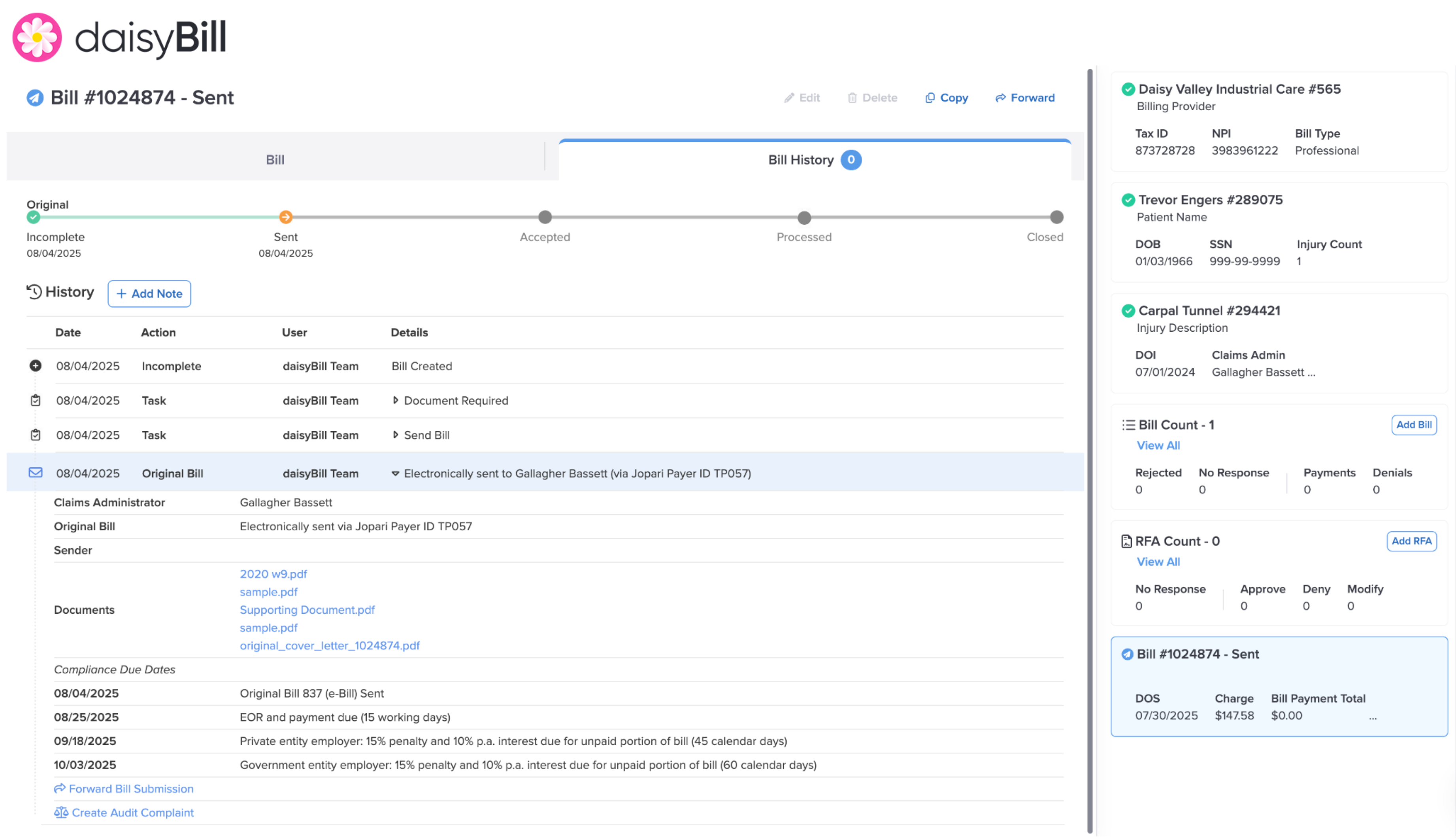Es gibt nichts, woran ich denken kann, das DaisyBill nicht bereits bedacht und umgesetzt hat, um die Verwaltung und Abrechnung von Arbeitsunfallansprüchen extrem einfach und zuverlässig zu machen. Das einzige Problem, auf das wir mit ihnen gestoßen sind, ist, dass nicht alle Anbieter ihr webbasiertes Abrechnungssystem nutzen müssen, und es gibt Anbieter, die einfach nur Zugang zu ihrer Clearinghouse-Technologie benötigen, da viele Anbieter, insbesondere ambulante Einrichtungen, ihre eigene interne Software für das Revenue Cycle Management haben. Bewertung gesammelt von und auf G2.com gehostet.