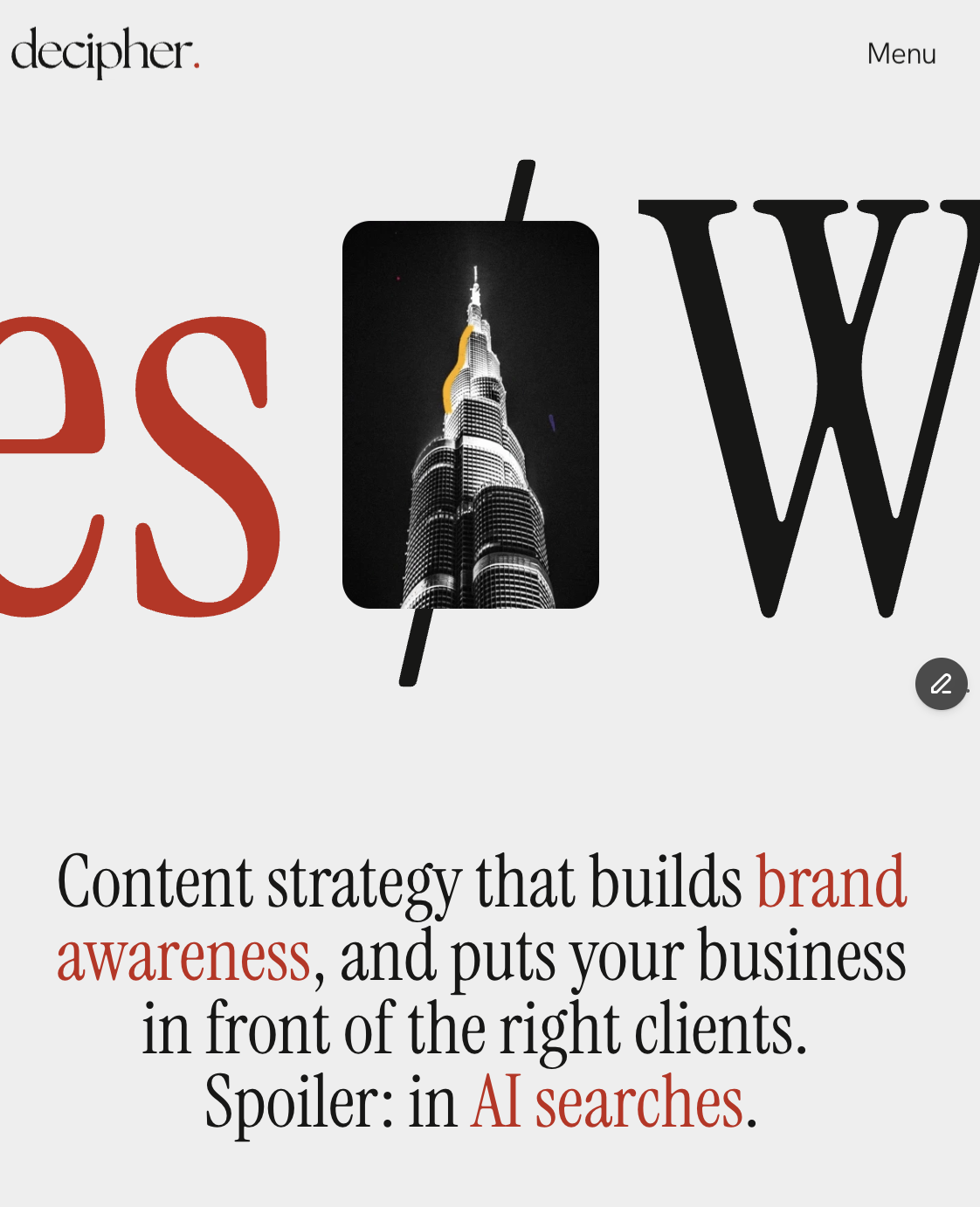 Was wir an Decipher Agency Ltd. am meisten schätzen, ist ihr zukunftsorientierter Ansatz, insbesondere a) wie sie einen Tonfall geschaffen haben, der widerspiegelt, wofür TCA steht, und b) wie sie traditionelles SEO nahtlos mit der Optimierung für KI verbinden. Ihre Einblicke und die Umsetzung von AIEO waren unglaublich hilfreich. Der Vorteil ist eine zukunftssichere Content-Strategie (und Inhalte), die uns einen deutlichen Vorteil verschafft - Glaubwürdigkeit bei bestehenden und neuen Kunden. Darüber hinaus produziert ihr Team konsequent hochwertige, markengerechte Inhalte, und ihre Beratungsdienste sind immer aufschlussreich und werden pünktlich (oder frühzeitig!) geliefert. Bewertung gesammelt von und auf G2.com gehostet.