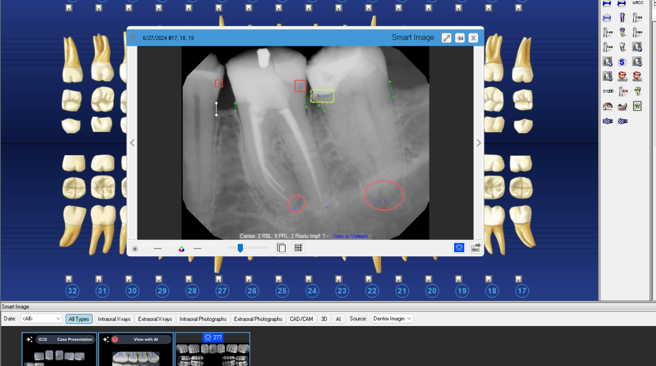Dentrix Detect AI, betrieben von VideaHealth, analysiert Röntgenbilder, um Karies und radiographischen Knochenverlust mit Zuversicht zu erkennen