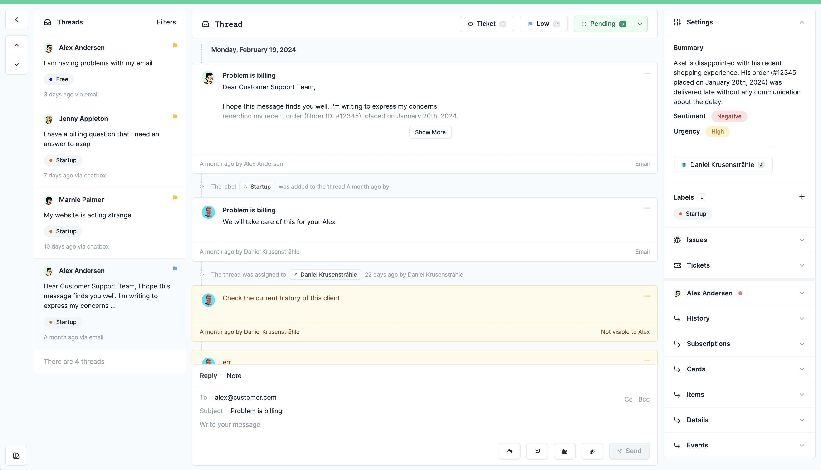 Was ich an Doerchat am meisten mag, ist die nahtlose Integration mit unserer Shopify-Connector-App. Es ist erstaunlich, wie es Kundendaten direkt in den Chat zieht! Dies war ein Wendepunkt für unser Support-Team. Wir können den Synchronisierungsstatus der Shopify-Store-Details eines Kunden sehen, ohne zwischen mehreren Tabs wechseln zu müssen. Die Markdown-Funktion im Helpdesk ist auch großartig. Die benutzerdefinierten Automatisierungen sind brillant! Wir haben es so eingerichtet, dass technische Fragen an unser Entwicklerteam und allgemeine Fragen an unser Support-Team weitergeleitet werden, was unsere Abläufe wirklich optimiert hat. Bewertung gesammelt von und auf G2.com gehostet.