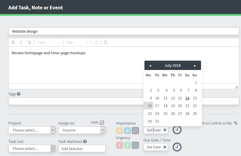 Erstaunliche Filterkapazitäten, die Ihnen helfen, Aufgaben zu identifizieren, die überfällig sind, sowie solche, die in der nächsten Woche anstehen; sowie Aufgaben, die nach Wichtigkeit, Dringlichkeit oder einem zugewiesenen Teammitglied organisiert sind.