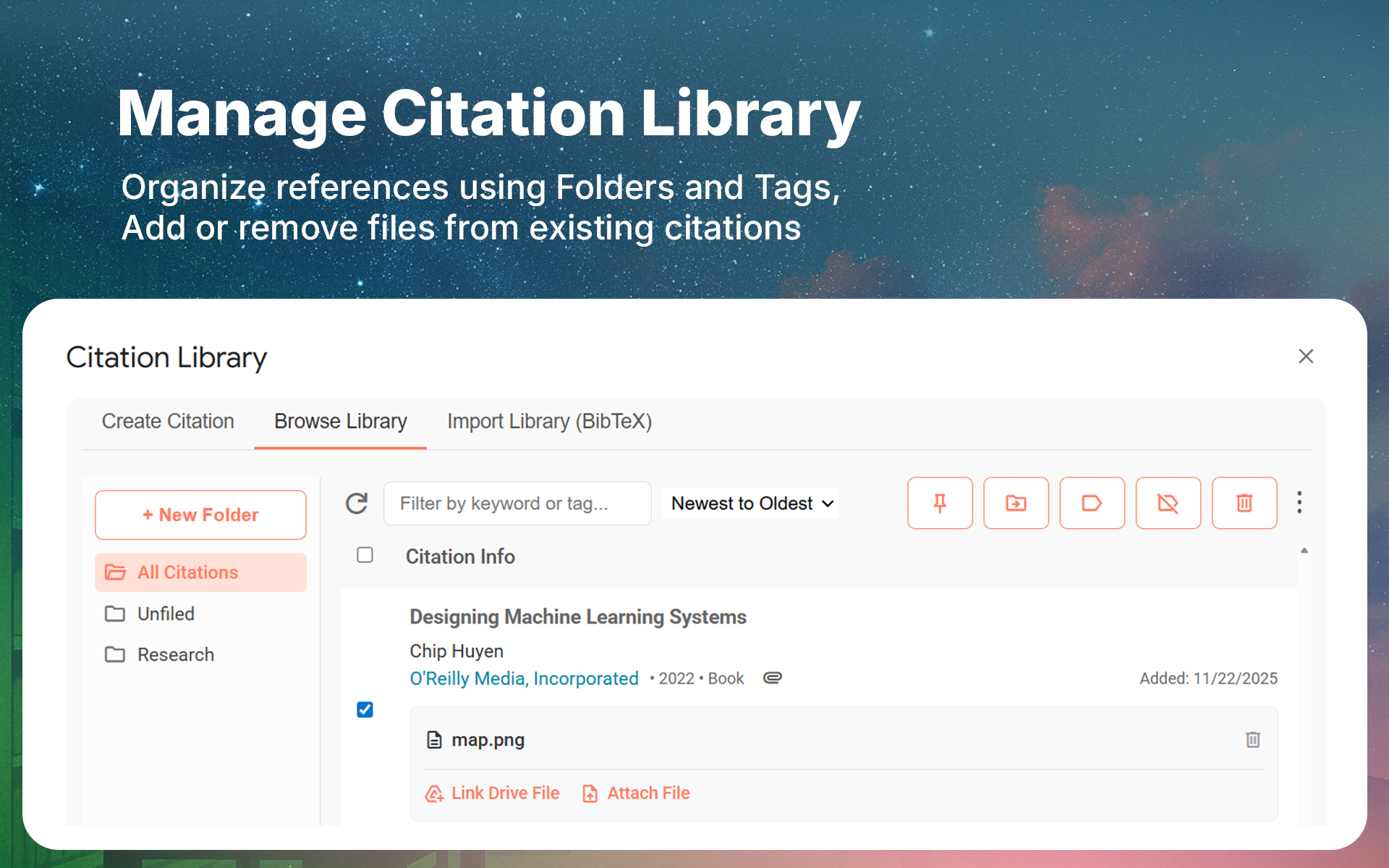 3. Integrierte Zitierwerkzeuge: Vereinfachen Sie das Referenzieren und das Management von Bibliografien für ein reibungsloses Schreiben.