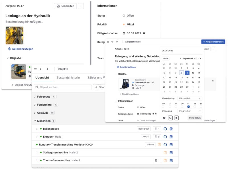 Mit Eptura Asset können Sie schnell und einfach wiederkehrende Wartungsaufgaben planen und überprüfen. Es ermöglicht Ihnen, Ihre Vermögenswerte zu verfolgen und Ihren Arbeitsablauf zu optimieren.