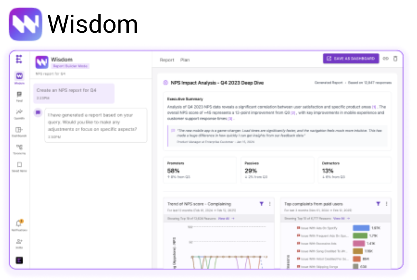 - Echtzeit-Einblicke: Bietet sofortige Analyse von Feedback-Trends, sodass Teams aufkommende Probleme und Chancen umgehend identifizieren können.