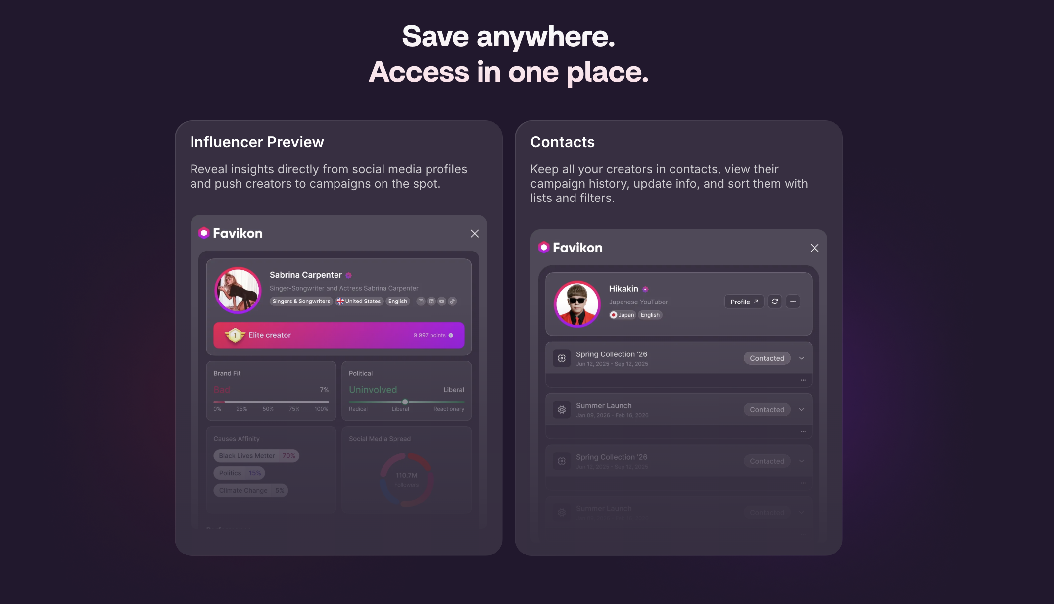 Ich mag es wirklich, dass der Datensatz in Favikon sehr umfangreich ist. Man kann absolut alles entdecken, was man über eine Person wissen möchte, und hat dennoch die Möglichkeit, nicht zu tief einzutauchen. Das aufbereitete Material ist wirklich reichhaltig, aber man kann bis ganz nach unten tauchen, wenn man das möchte. Es ist nützlich herauszufinden, ob Influencer Sponsoring-Verträge haben und ob sie für Empfehlungen bezahlt werden oder ob sie unabhängig sind. Dies ist eines von vielen wertvollen Details, die Favikon bietet. Bewertung gesammelt von und auf G2.com gehostet.