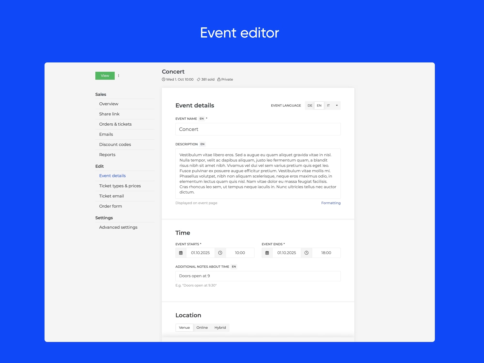 Fienta Demo - Easy-to-use event editor