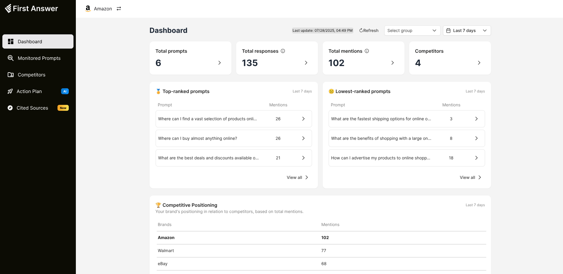 Writesonic ist die vollständige GEO/AEO-Plattform, die die KI-Sichtbarkeit Ihrer Marke im Suchbereich verfolgt, identifiziert, wo Konkurrenten Sie übertreffen, und die Korrekturen durchführt – indem sie neue Inhalte erstellt, bestehende Seiten aktualisiert, Zitate erwirbt und sich auf Reddit engagiert.