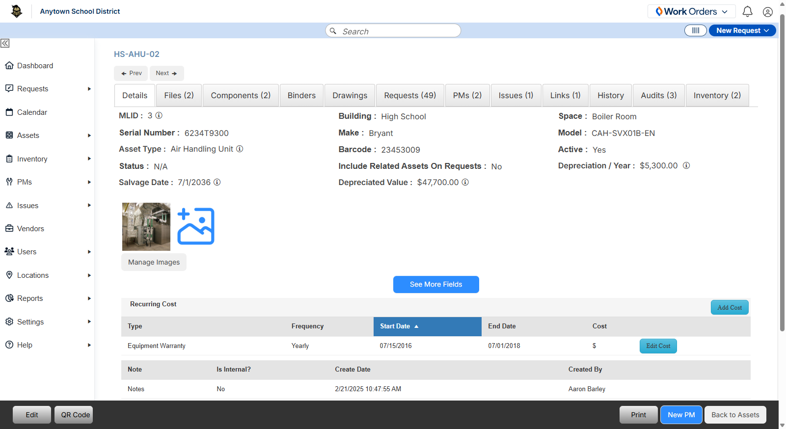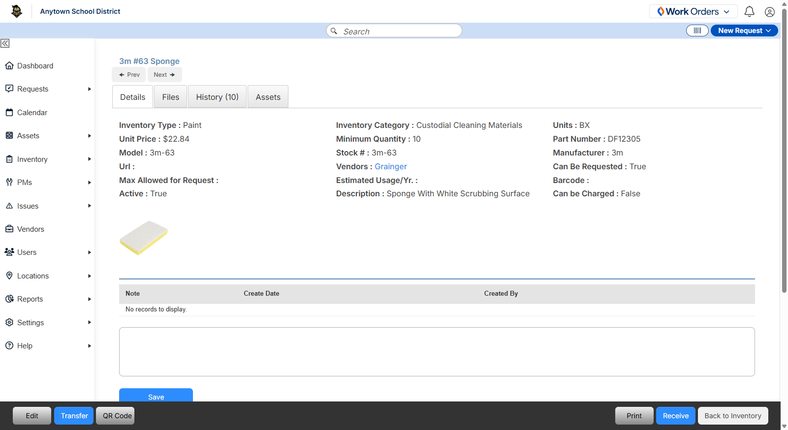 Neben Wartungsanfragen und Asset-Management ist ML Work Orders mit Modulen für Bestandsverwaltung und vorbeugende Wartung ausgestattet. Das System ermöglicht es den Bezirken, den Bestand an Vorräten oder Teilen in ihren Einrichtungen zu verfolgen und sicherzustellen, dass Vorräte immer vorrätig sind, indem automatische Updates erfolgen, wenn die Bestandsniveaus niedrig sind. Administratoren können auch geplante Wartungen wie Inspektionen und Reinigungen einrichten.