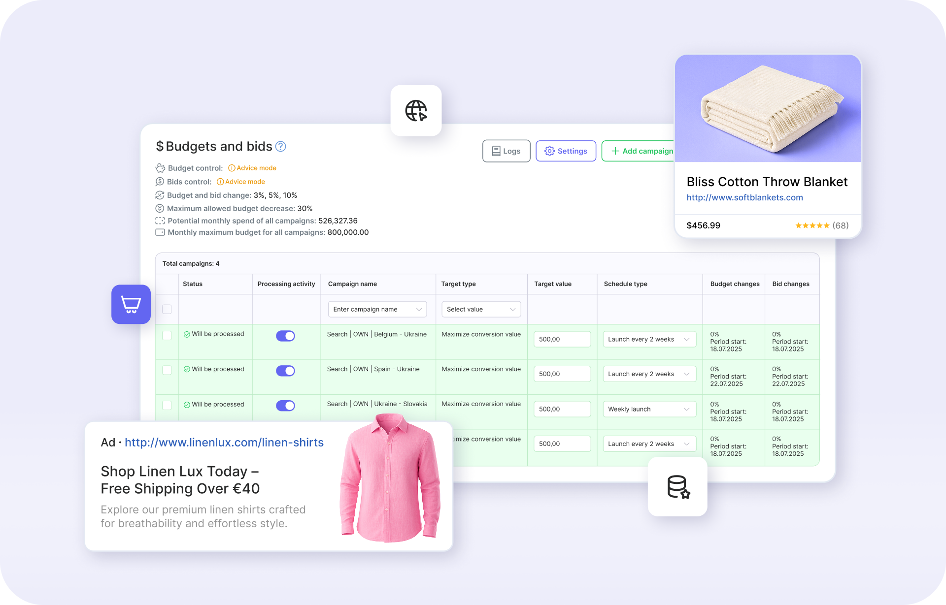 • Gebots- und Budgetautomatisierung – intelligente Zuweisung basierend auf Leistung und Nachfrage