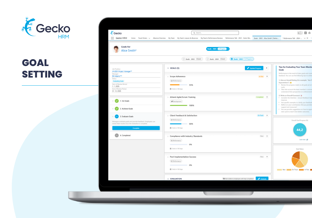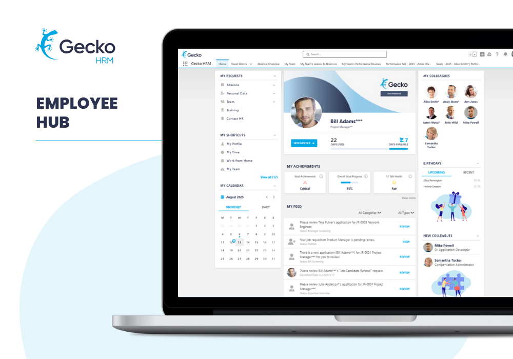 Erfahrung steht im Mittelpunkt der Plattform. Mit leistungsstarken Analysen, benutzerdefinierten Dashboards, Gecko AI und speziellen Hubs für Mitarbeiter und Manager bietet Gecko HRM eine moderne, intuitive Benutzeroberfläche, die Transparenz, Engagement und Entscheidungsfindung in der gesamten Organisation verbessert.