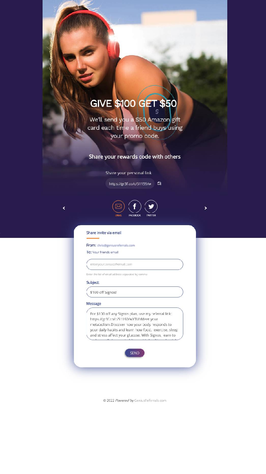 Sie müssen keine Tracking-Skripte auf Ihrer Website installieren - was bedeutet, dass Sie ein Empfehlungsprogramm ohne die Hilfe von Entwicklern starten können. Unsere Empfehlungssoftware wird mit einem integrierten 'Page Builder' geliefert, sodass Sie Ihre eigenen Seiten erstellen können, um Empfehlungen zu erfassen, und diese können zu 100 % markenkonform aussehen und sich anfühlen.