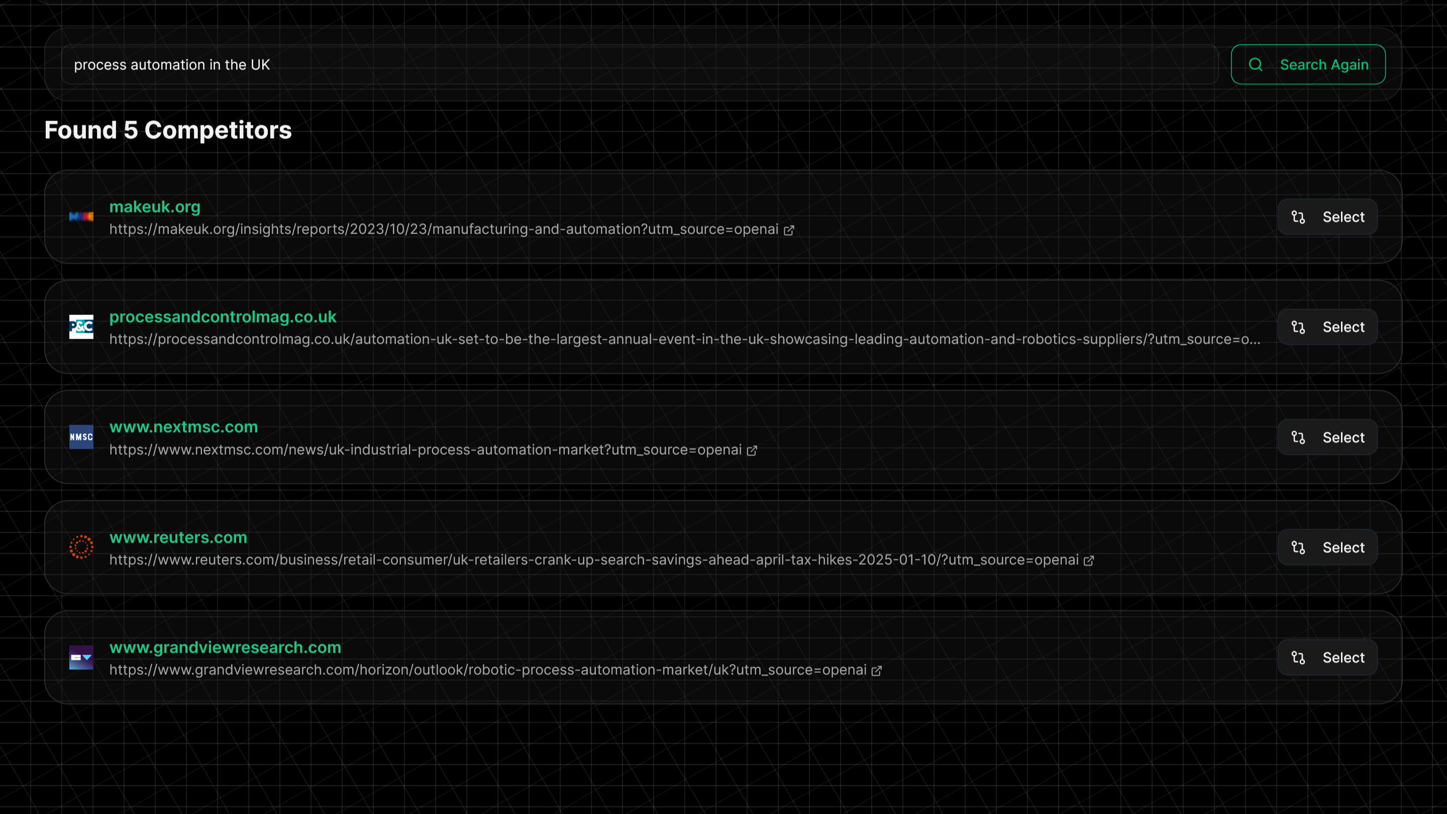 Decken Sie Marken auf, die in Ihrer Branche die KI-Antworten dominieren, und identifizieren Sie aufkommende Bedrohungen, von denen Sie nichts wussten.