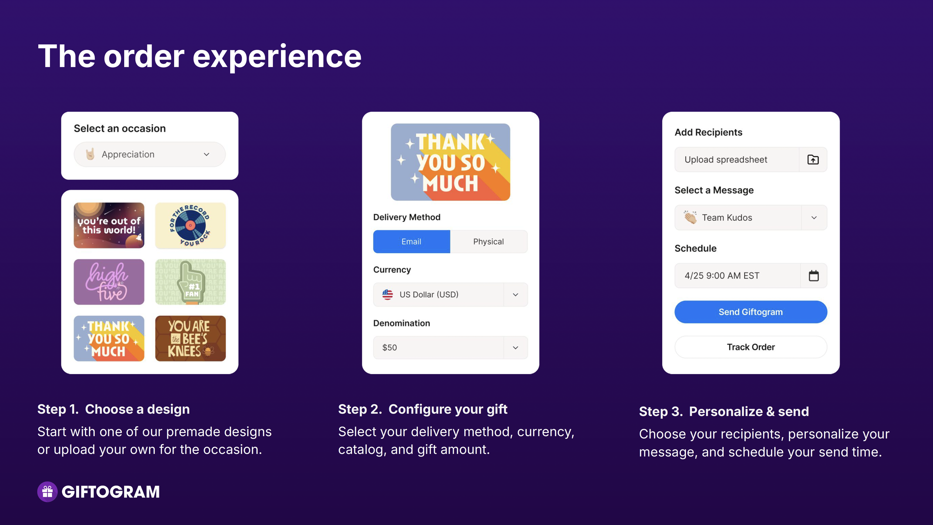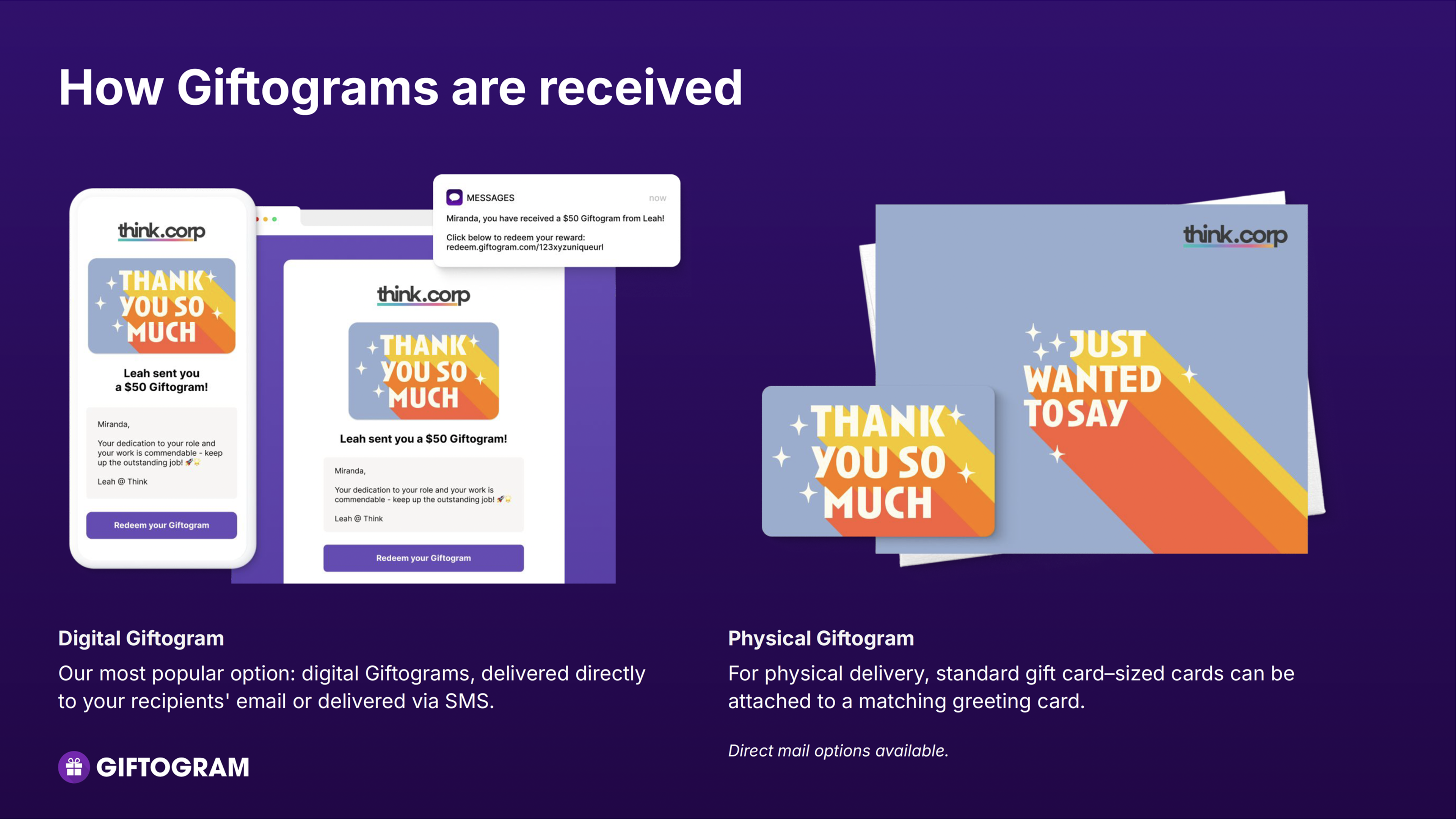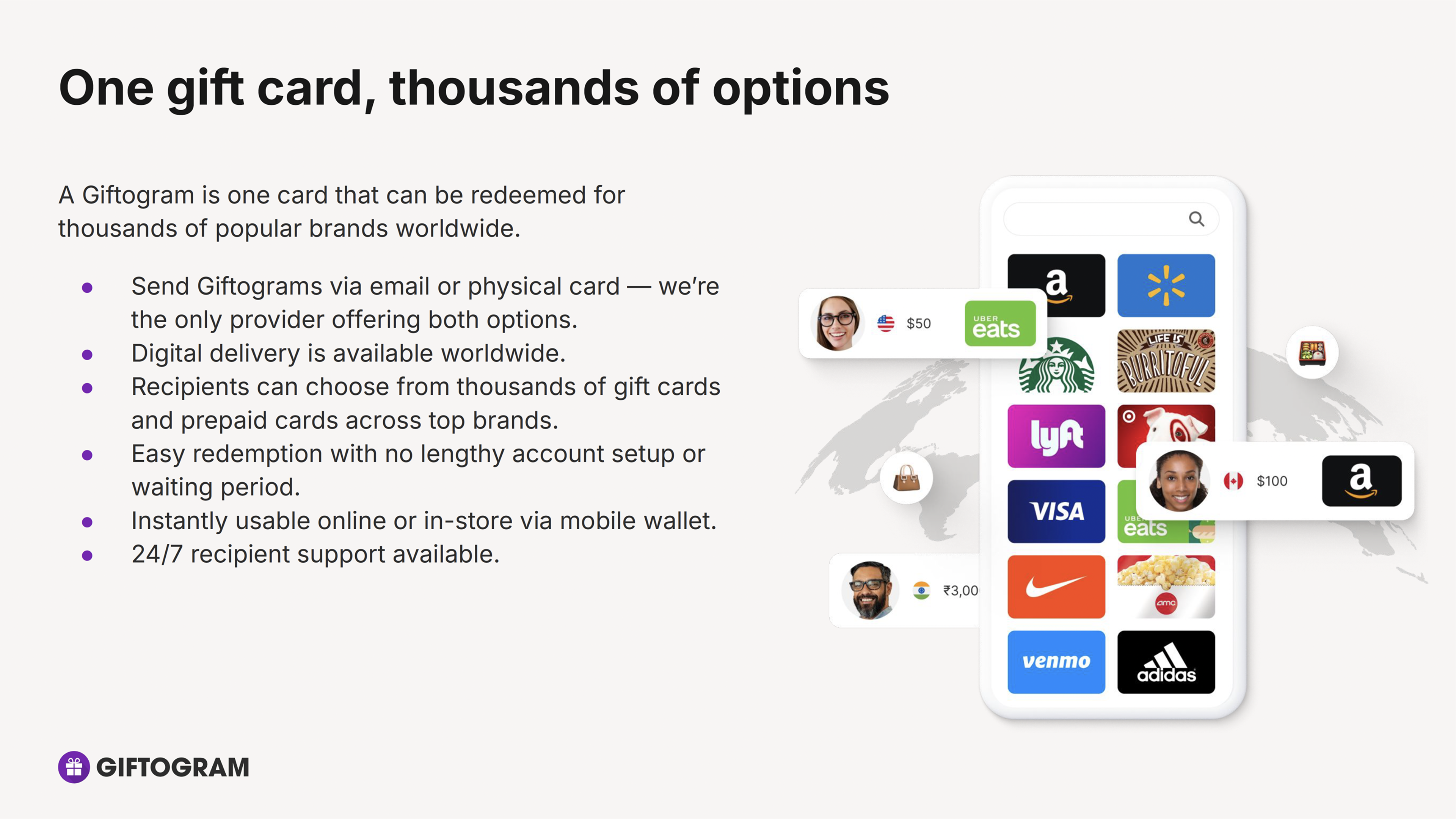 Vielen Dank für Ihr wunderbares Feedback! Wir freuen uns sehr zu hören, dass Giftogram ein so geschätzter Teil Ihres Anerkennungsprogramms geworden ist und dass Ihr Team die Flexibilität genießt, ihre eigenen Belohnungen auszuwählen. Wir freuen uns auch, dass Sie unsere Anpassungsoptionen genutzt haben, um Ihre Geschenkkarten wirklich markengerecht zu gestalten.