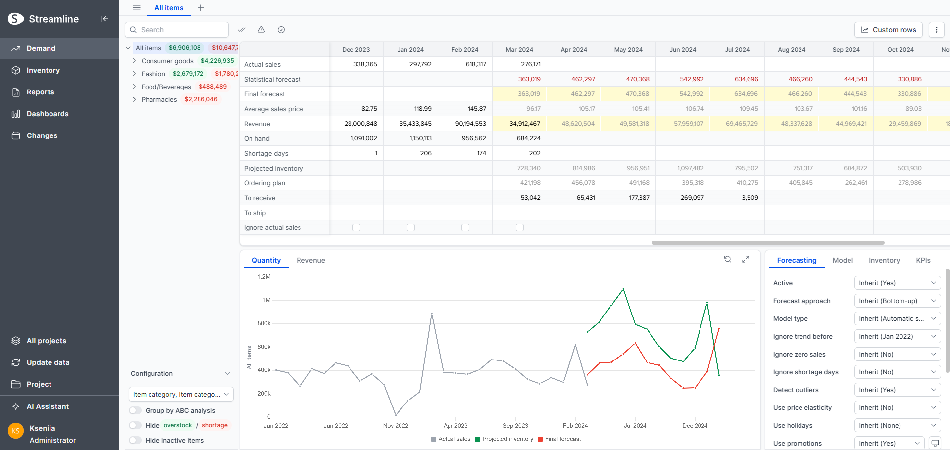 Zu den Hauptmerkmalen von Streamline gehört die KI-gesteuerte Bedarfsplanung, die menschliches Verhalten nachahmt, um genauere Prognosen zu erstellen. Dies eliminiert die Abhängigkeit von traditionellen Methoden wie Excel-Tabellen oder Daten aus ERP-Systemen. Die Bestandsplanungsfunktion optimiert Lagerbestände und aktualisiert automatisch Nachschubpläne, wodurch Benutzer klare Einblicke erhalten, was, wie viel und wann bestellt werden soll. Darüber hinaus helfen die Produktionsplanungsfähigkeiten, Bestellmengen und Transportkosten zu reduzieren, den Lieferkettenprozess zu straffen und die Gesamtproduktivität zu steigern.