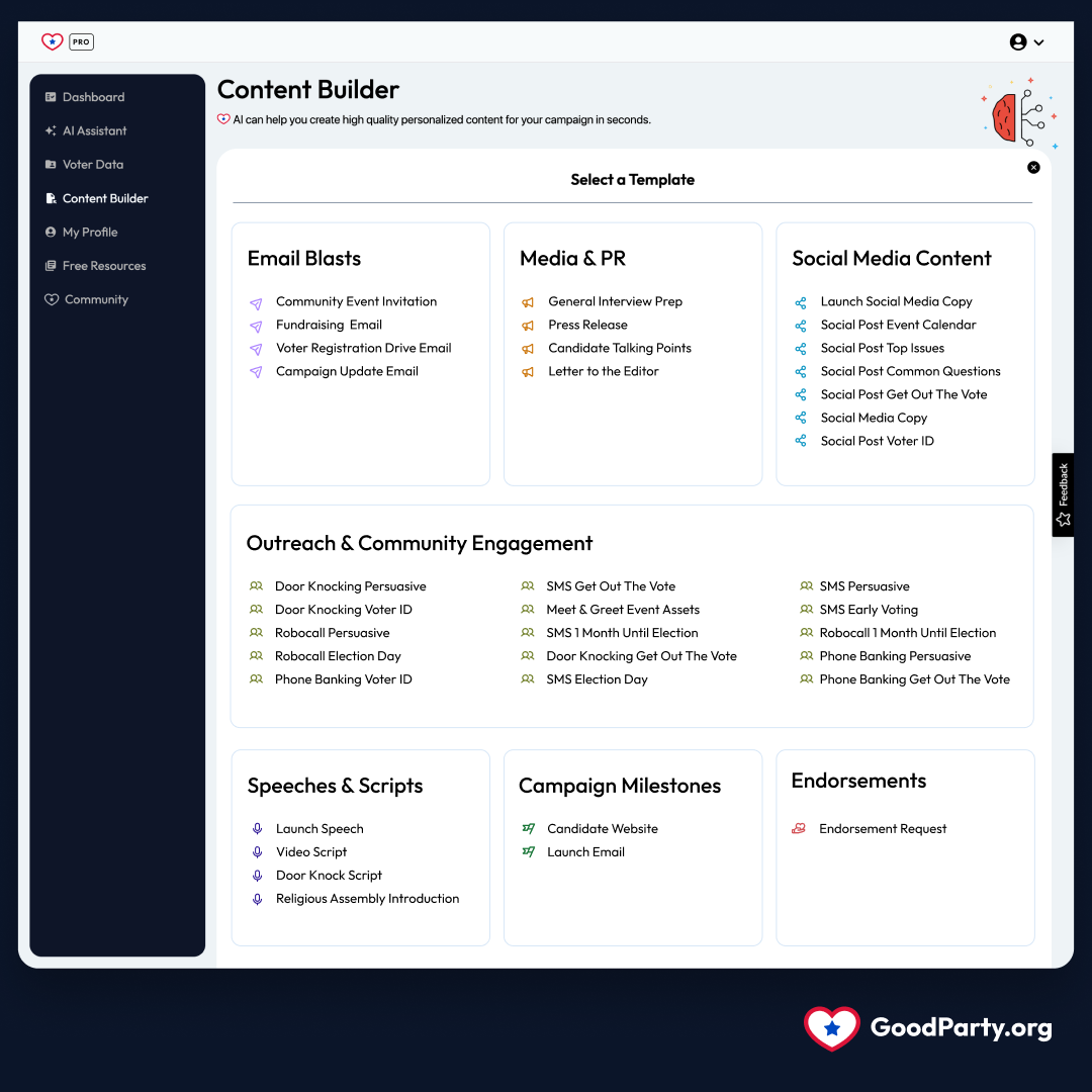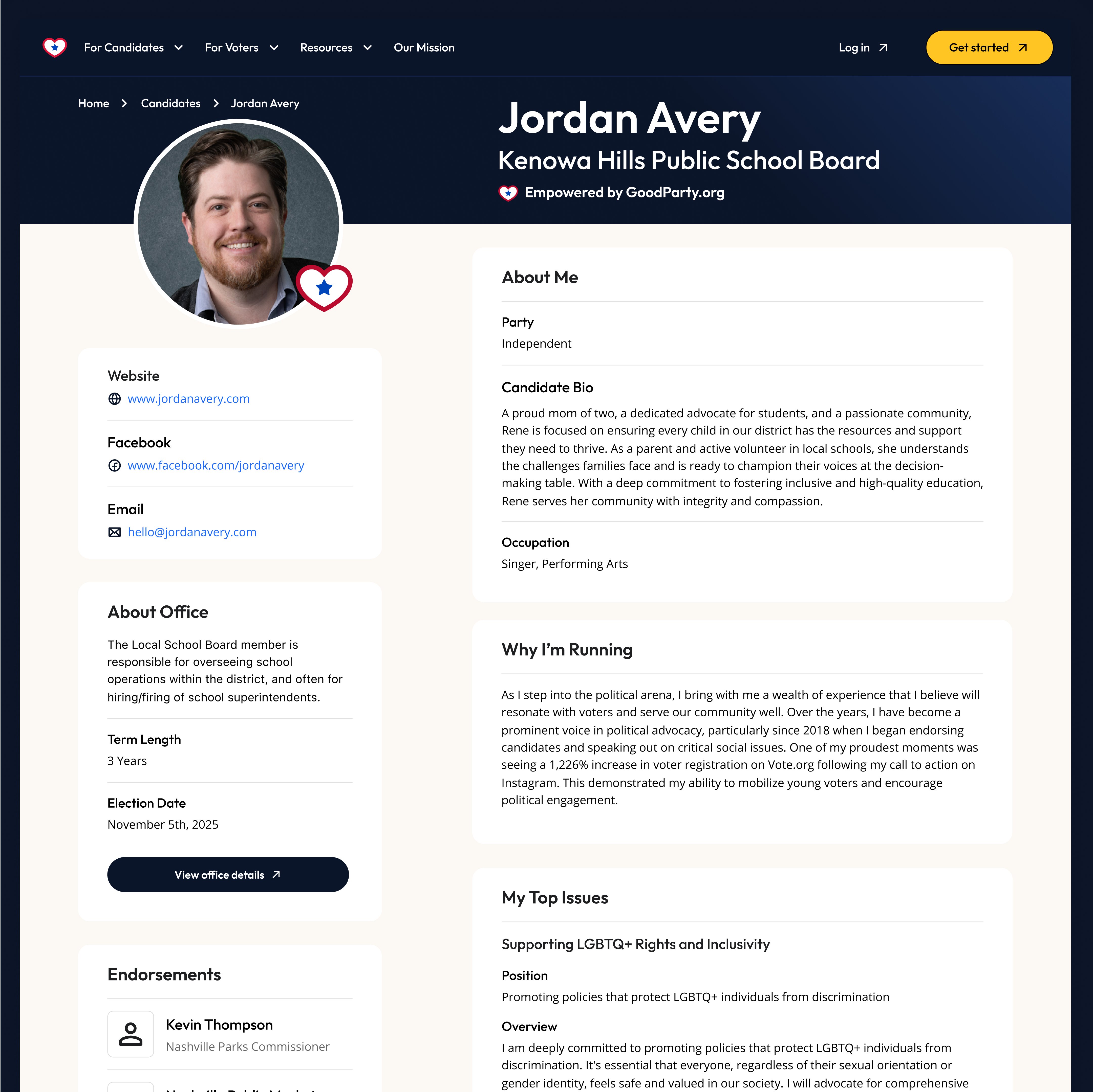 Ich genieße es definitiv, goodparty.org zu nutzen, um herauszufinden, was ich tun muss, wenn es darum geht, eine Kampagne für den Stadtrat in meiner Stadt Plainwell zu führen. Es hat mir einige Dinge gesagt, die ich nicht wusste, sowie eine Erinnerung an Dinge, die ich tun muss, die mir irgendwie entfallen sind. Ich denke, der beste Teil ist, dass alle Videos, die ich gesehen habe, beruhigend sind oder nicht übermäßig aufgeregt oder so etwas. Es ist, als hätte man ein persönliches Gespräch in diesen Videos. Sehr zu empfehlen. Definitiv der Leitfaden für alle lokalen Rennen, die man machen möchte, ohne Teil der Zwei-Parteien-Mafia zu sein. Bewertung gesammelt von und auf G2.com gehostet.