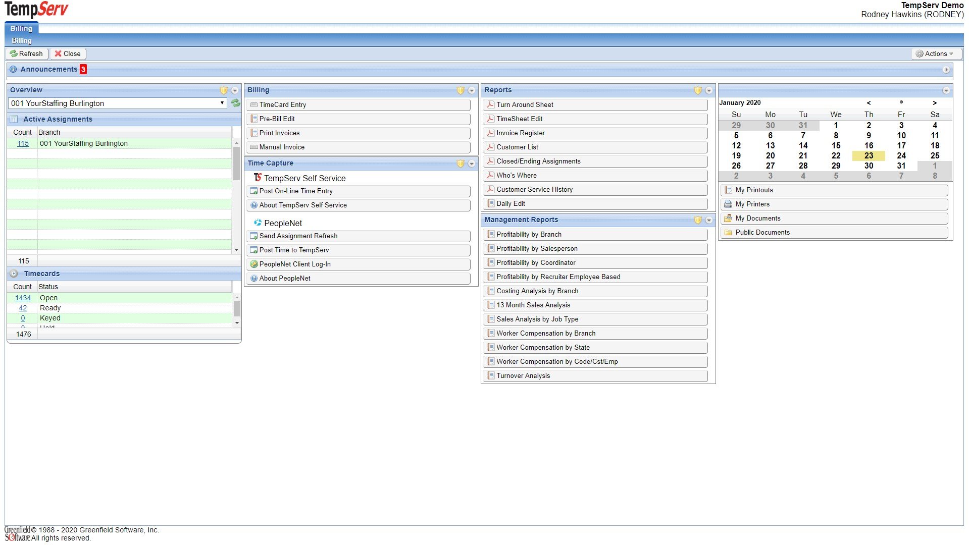 TempServ nutzt meine Browser-Schnittstelle und Internetverbindung, sodass nichts auf Ihrem Desktop installiert werden muss. Im Büro, zu Hause oder unterwegs, übernehmen Sie die Kontrolle über Ihr Geschäft. Sie nehmen den Auftrag an, finden die richtige Person, um ihn zu besetzen, und wenn die Zeit gekommen ist, zahlen und berechnen Sie ihn. Keine doppelte Eingabe, keine verlorene Zeit, kein Problem. Bewertung gesammelt von und auf G2.com gehostet.