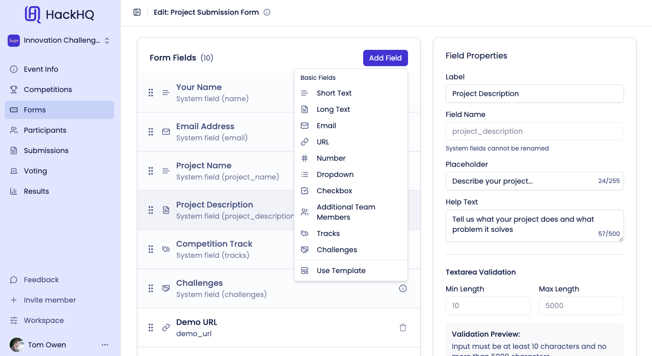 HackTribe vereinfacht die Organisation von sowohl Online- als auch Vor-Ort-Hackathons und bietet allen Beteiligten ein müheloses und angenehmes Erlebnis. Diese umfassende Plattform deckt alles ab, von der Registrierung bis zur Teamzusammenarbeit, und vereinfacht den Prozess in jedem Schritt. Mit der Ideenmanagement-Funktion können Benutzer mühelos Ideen sammeln, Teams bilden und ihre Projektziele definieren, was die Verwaltung und Förderung von Innovationsinitiativen erleichtert.