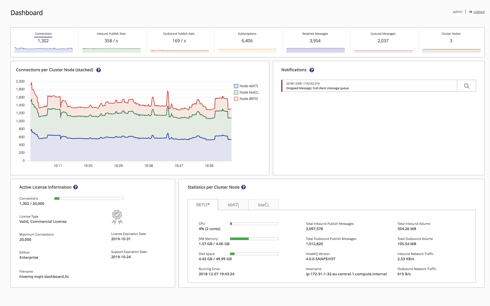 HiveMQ ist sehr zuverlässig und skalierbar. Sein Broker verarbeitet große Mengen an MQTT-Nachrichten effizient mit minimaler Latenz. Die Überwachungs- und Verwaltungstools der Plattform erleichtern das Verfolgen von Geräteverbindungen und das schnelle Beheben von Problemen.