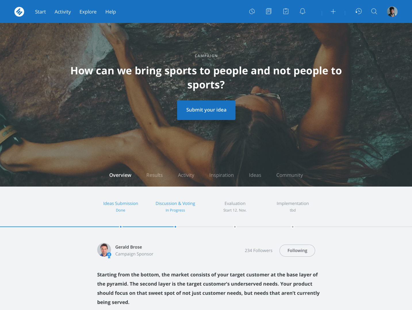Die Plattform, die wir mit HYPE Innovation erstellt haben, wird es uns ermöglichen, alle Ideen, die unser Unternehmen generiert, auf eine Weise aufzunehmen, die uns zuvor nicht möglich war. Sie wird zum einzigen Portal für alle unsere CI-Möglichkeiten, die täglich identifiziert werden. Das ist ein Novum für uns, und es in Aktion zu sehen, war überwältigend. Bewertung gesammelt von und auf G2.com gehostet.