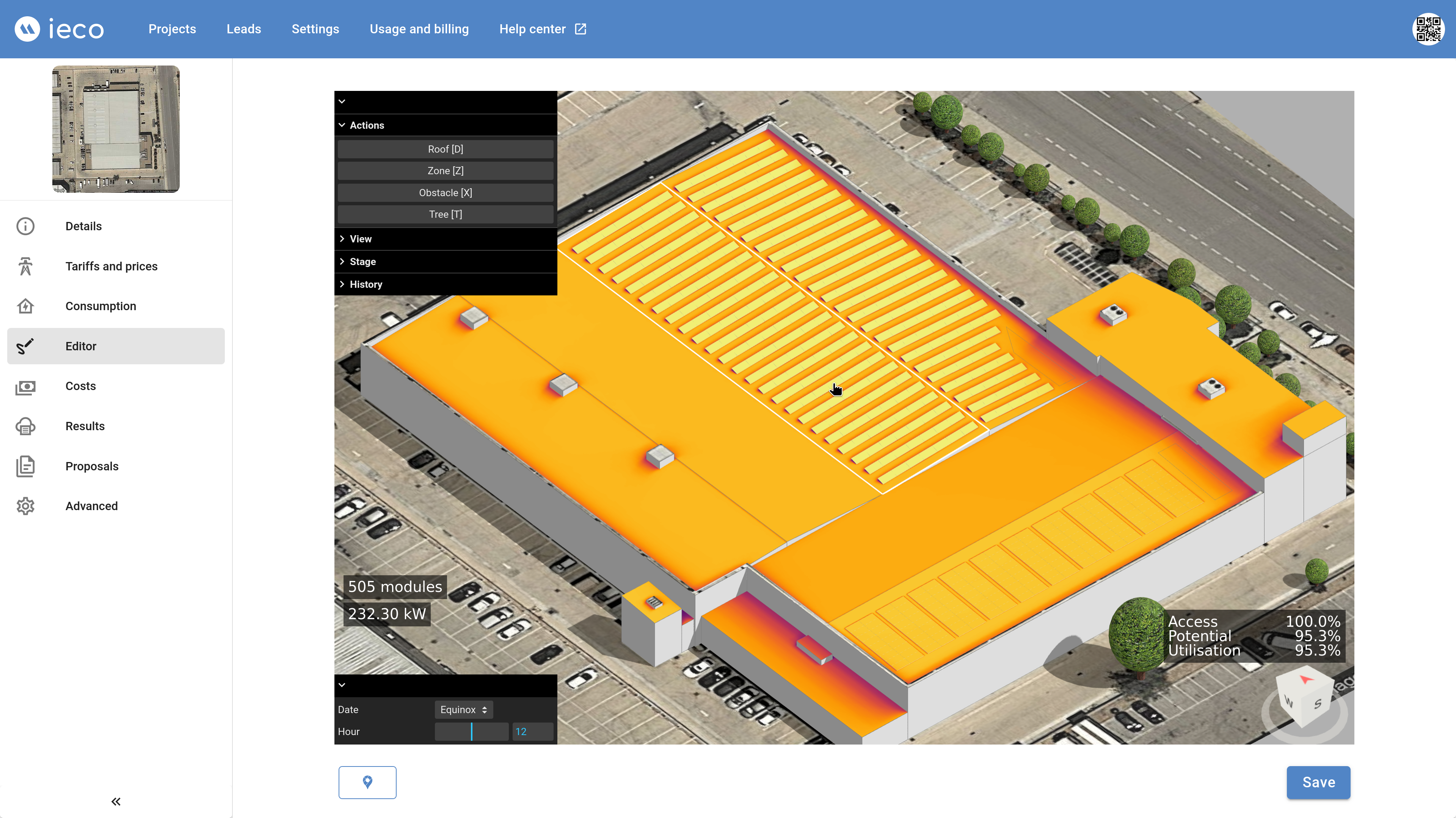 Ein webbasiertes Verkaufs- und Design-Tool für Solarprofis. Es verfügt über eine 3D-Design-Engine und eine Energieertragssimulation, einen detaillierten Finanzrechner und einen Drag-and-Drop-Angebotseditor.
