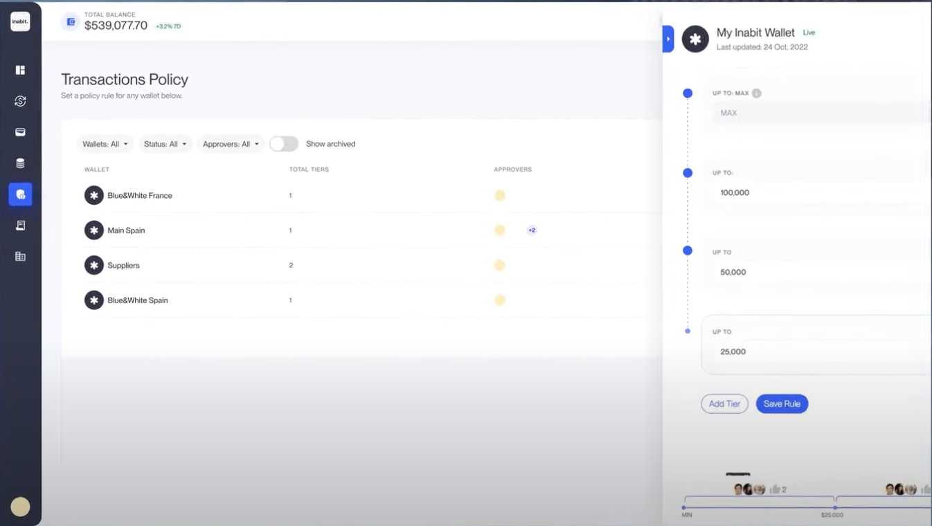 - Policy Engine: Automates governance policies for transaction rules and administrative approvals, allowing organizations to configure rules that dictate how transactions are handled and approved.