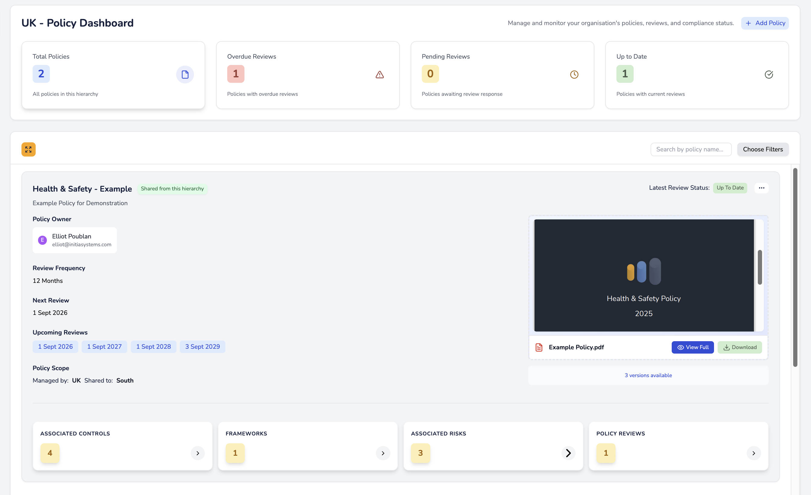 - Kontinuierliche Überwachung und Warnungen: Bietet Echtzeit-Tracking des Compliance-Status und benachrichtigt Benutzer umgehend über Probleme, um die kontinuierliche Einhaltung der regulatorischen Anforderungen sicherzustellen.
