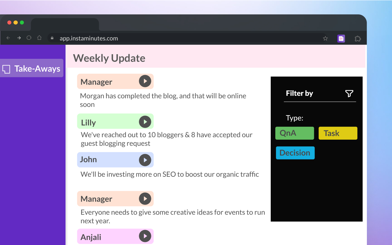 Es integriert sich mit vielen Meeting-Anwendungen wie Zoom, Webex, Teams usw. und hilft, die Notizen mit KI vorzubereiten, was bedeutet, dass Sie die Notizen nicht manuell machen müssen. Die KI erledigt die ganze Arbeit für Sie und Sie können sich auf die Tagesordnung des Meetings konzentrieren. Es gibt auch das Transkript des Meetings namensweise. Bewertung gesammelt von und auf G2.com gehostet.