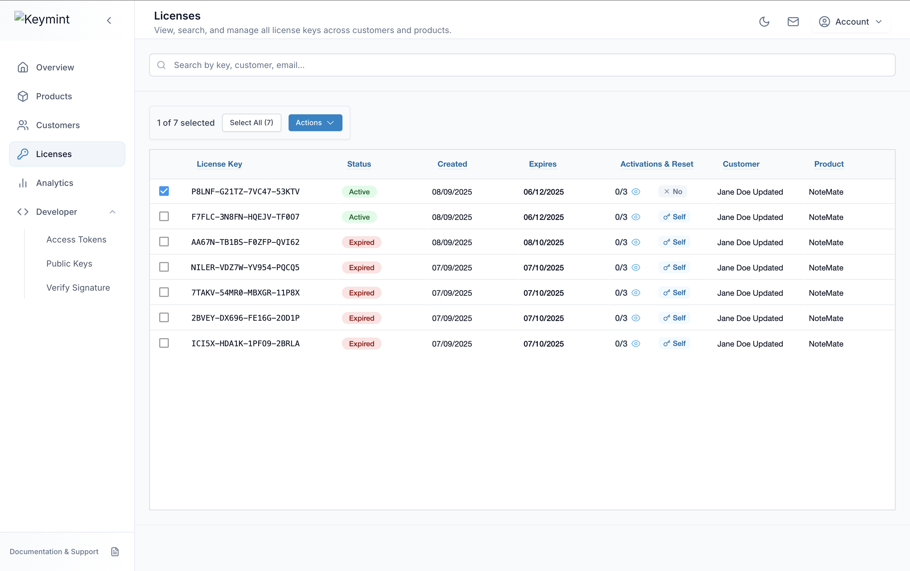 Toteinfaches Software-Lizenzierungs- und Vertriebs-API, entwickelt für Desktop-Anwendungen, On-Premise-Software und andere digitale Produkte.