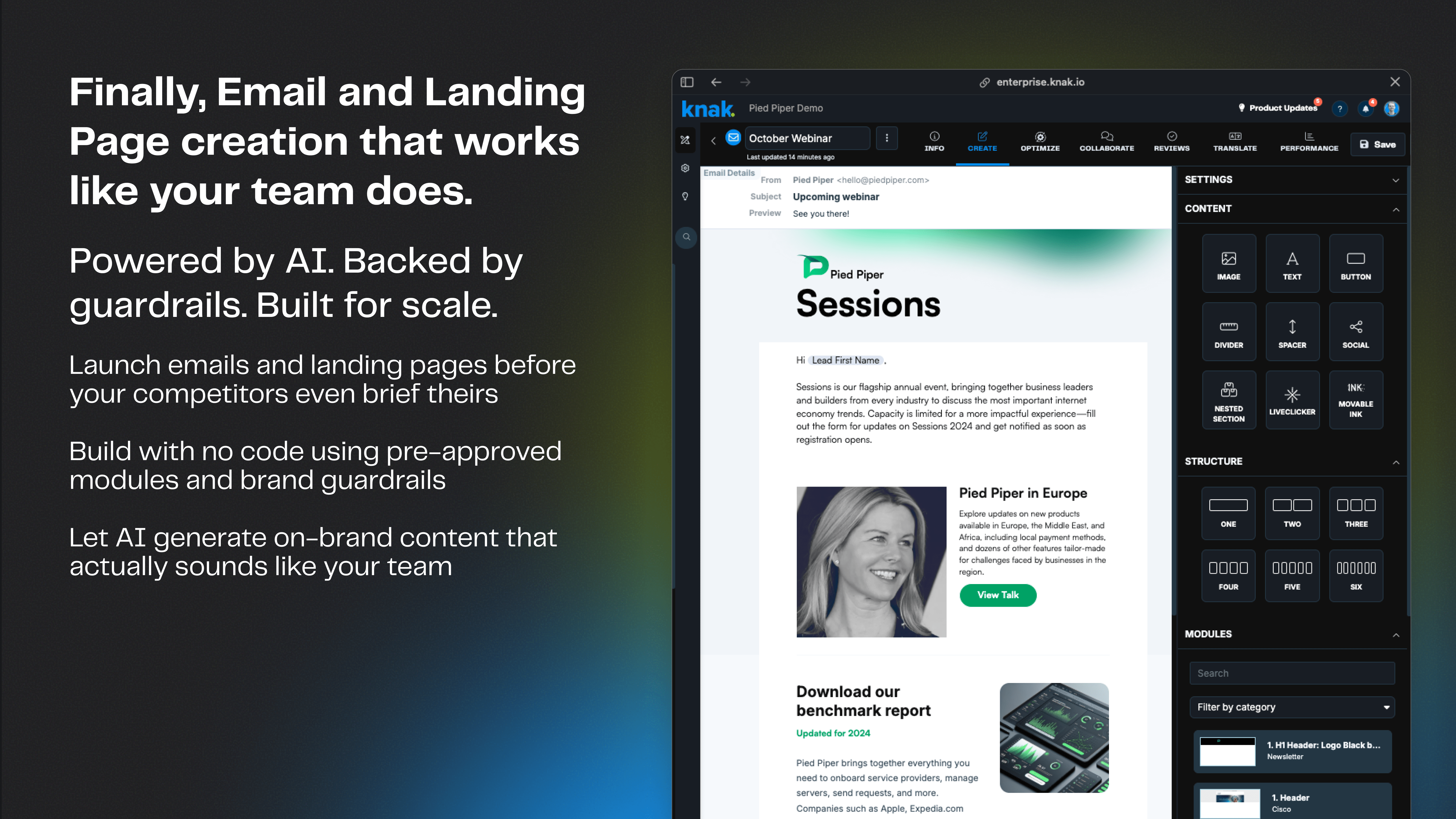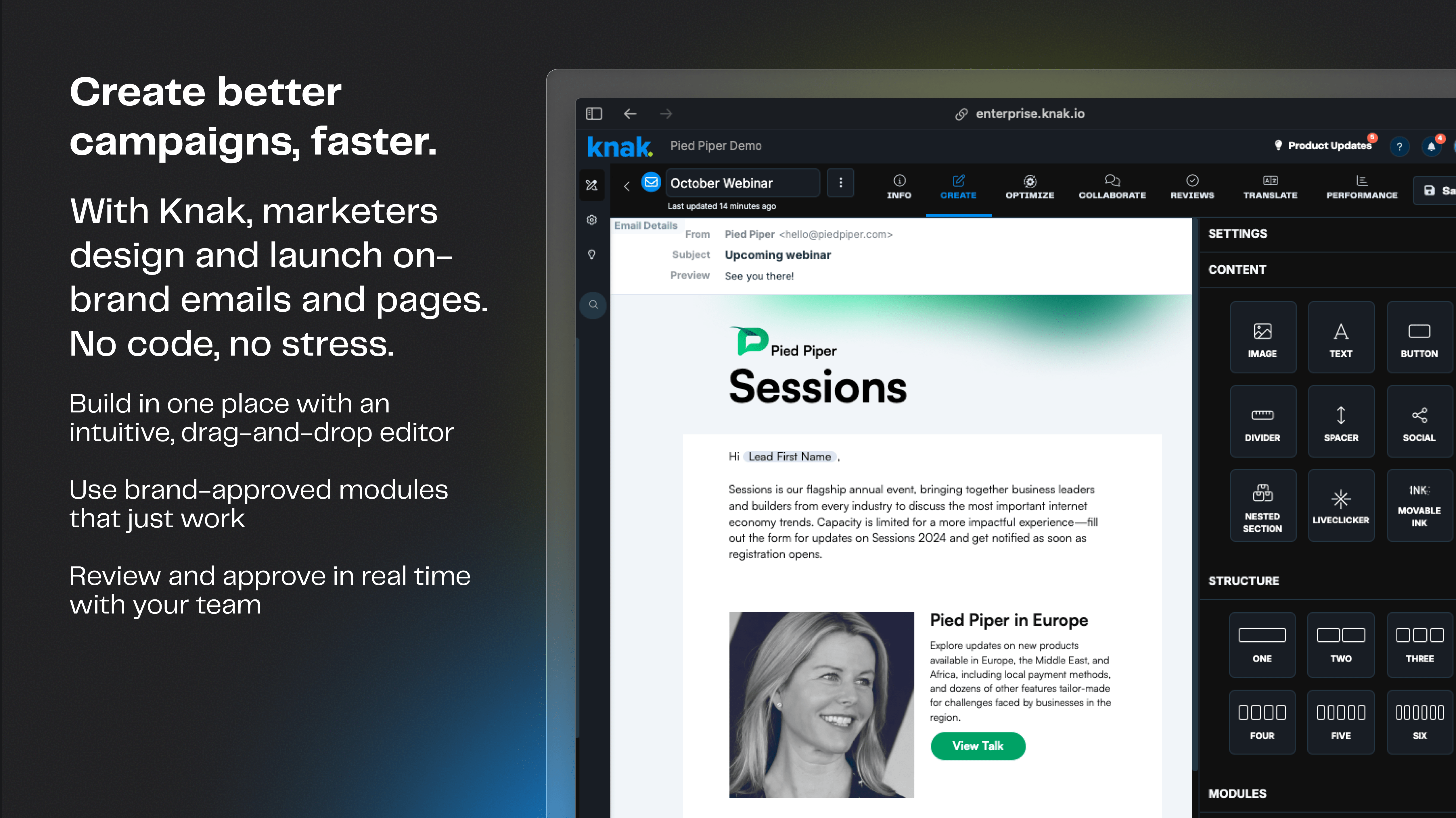 Ich mag, dass Knak das Erstellen von Landing Pages und E-Mails mühelos macht, ohne dass man Programmiersprachen wie HTML, CSS und JavaScript kennen muss. Das Rastersystem ist besonders beeindruckend und bietet eine einfache und intuitive Möglichkeit, Inhalte zu organisieren. Ich schätze auch die Leichtigkeit, mit der ich Designs anpassen kann, um sicherzustellen, dass alle Ausgaben mobil ansprechbar sind. Ein bedeutendes Highlight für mich ist die nahtlose Integration von Knak mit anderer Marketing-Software, die den Prozess der Übertragung von Assets vereinfacht und den Workflow verbessert. Anfangs fand ich den Integrationsprozess unkompliziert, was größtenteils der Klarheit und Nützlichkeit der Dokumentation von Knak zu verdanken ist. Bewertung gesammelt von und auf G2.com gehostet.