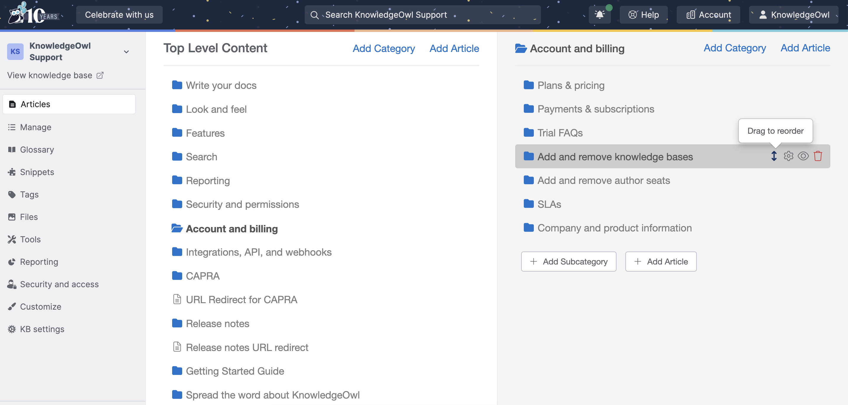 Flexible Zugriffskontrollen: Erstellen Sie öffentliche Wissensdatenbanken für Kunden, private für interne Teams oder hybride Lösungen mit detaillierten Berechtigungen – alles von einer Plattform aus.