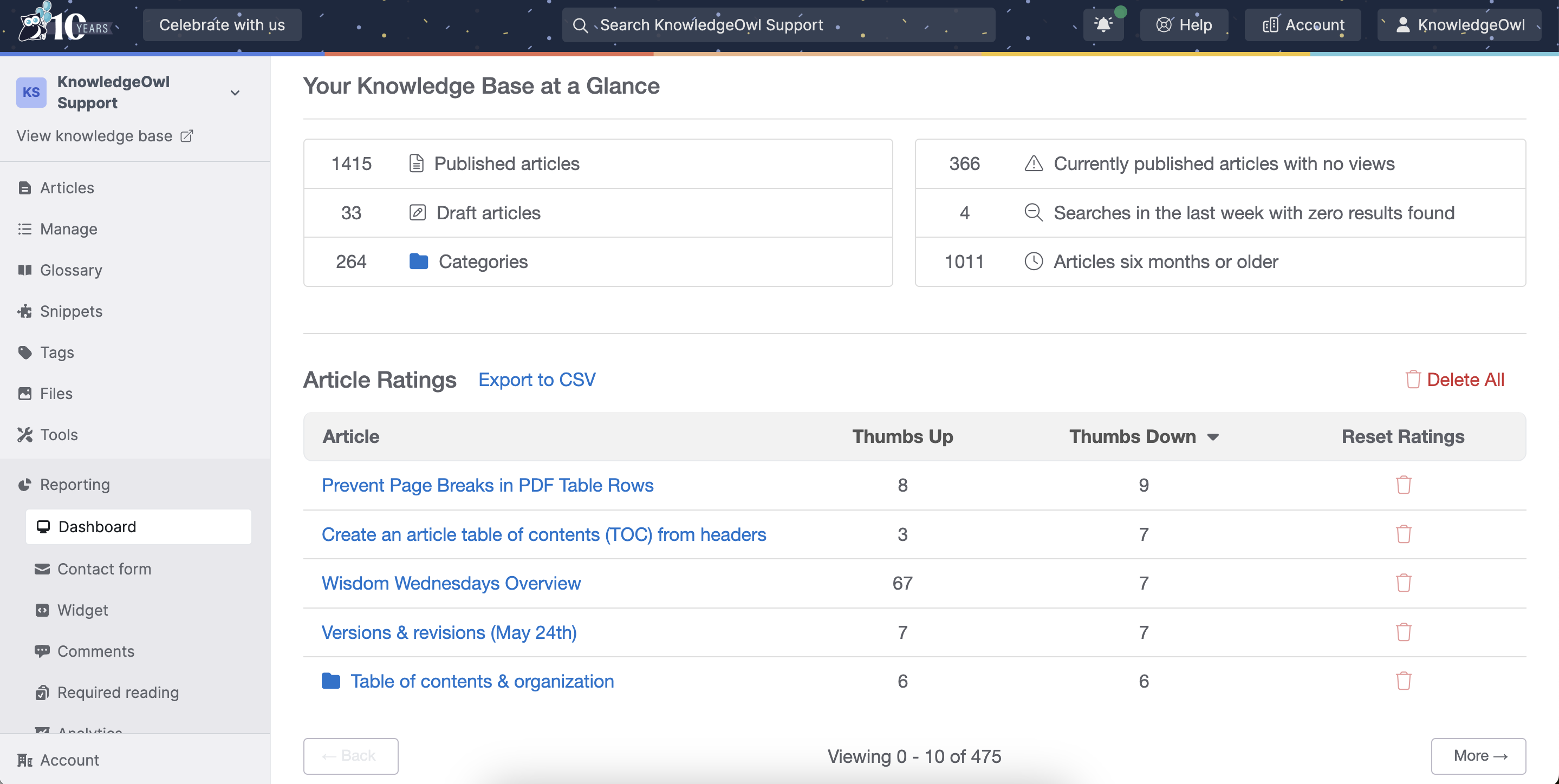 Umsetzbare Analysen: Verfolgen Sie die Leistung von Artikeln, das Suchverhalten, die Benutzerinteraktion und Inhaltslücken mit detaillierten Einblicken, die kontinuierliche Verbesserungen vorantreiben.