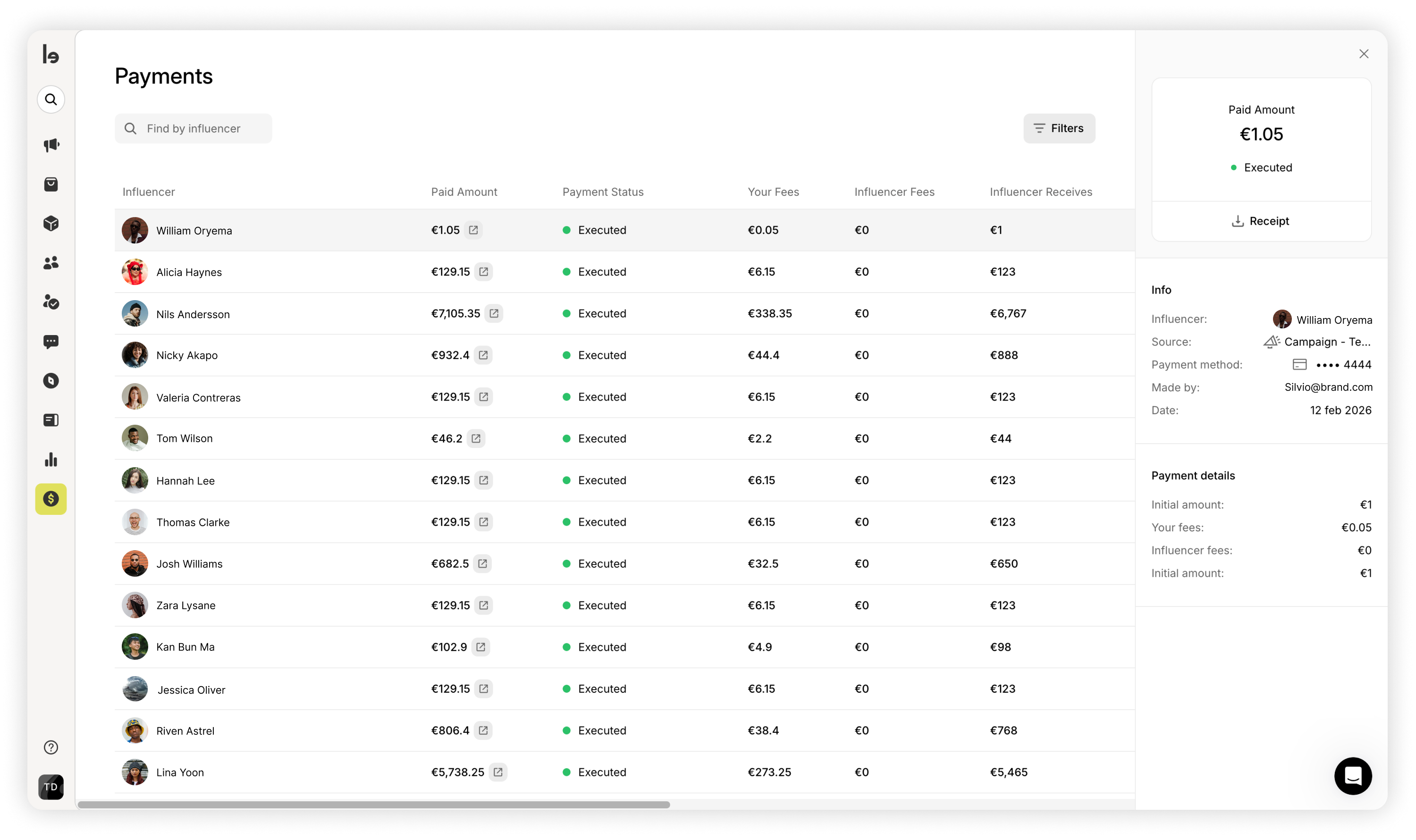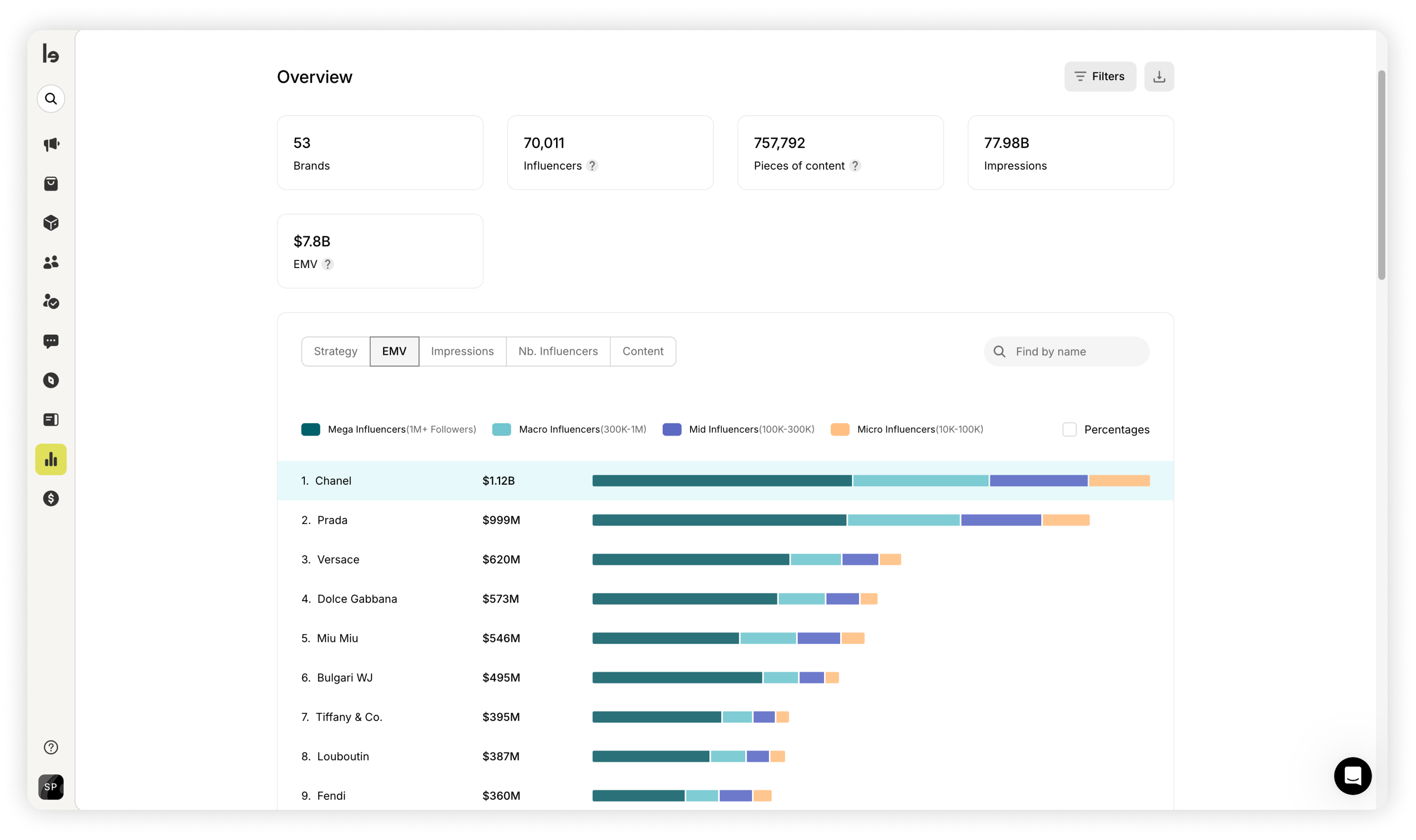 Ich mag, wie Lefty das Tracking optimiert und den Prozess durch Automatisierung viel reibungsloser gestaltet. Es stellt sicher, dass jeder Beteiligte, sowohl global als auch regional, die gleichen Metriken und Berichte verwendet, was Transparenz darüber gibt, was in den Regionen vor sich geht. Ich finde es hilfreich, dass alles an einem Ort bleibt. Die Automatisierung erleichtert die Dinge auch, indem sie automatisch Einblicke liefert und die Notwendigkeit vermeidet, Kanäle von Erstellern oder Talenten manuell zu überprüfen. Die neue Funktion, die Erwähnungen außerhalb von Kampagnen einbezieht, ist super hilfreich. Bewertung gesammelt von und auf G2.com gehostet.