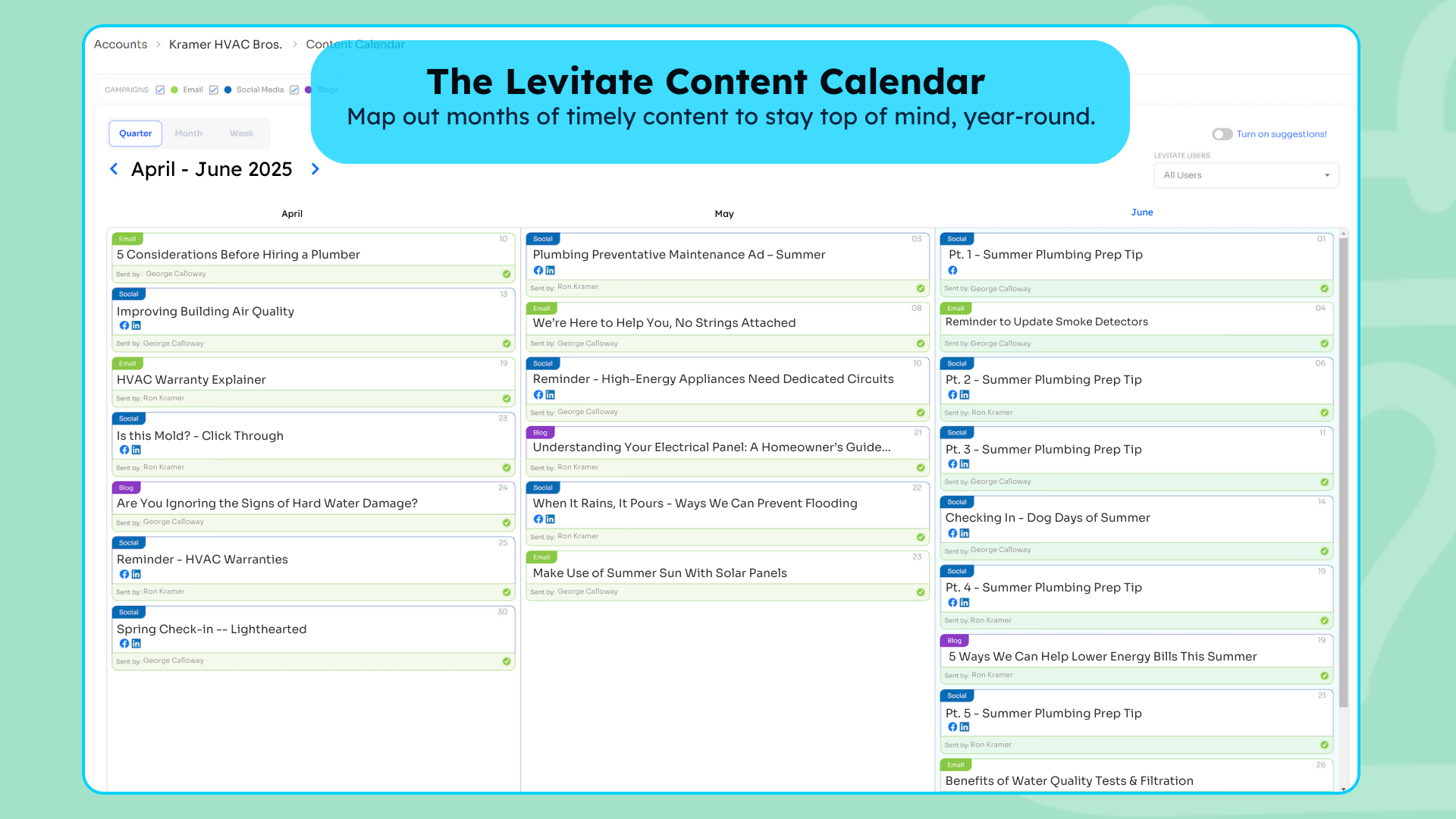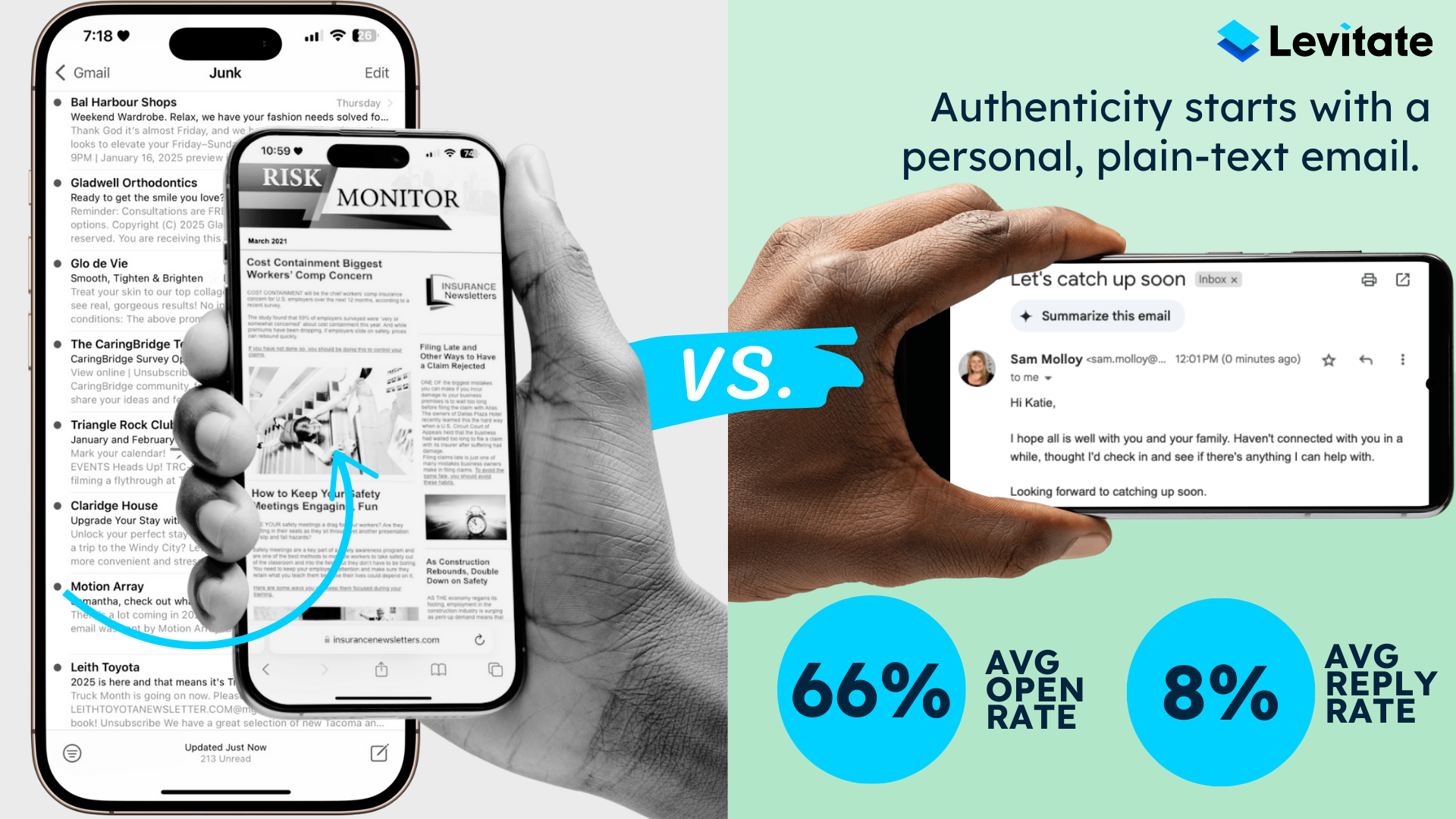 Die nächste große Marketingbewegung? Weniger Marketing. Levitate kombiniert KI-gestützte Software mit engagierten Inhaltsspezialisten, um Ihnen zu helfen, echte Beziehungen zu Ihrem Netzwerk aufzubauen.
