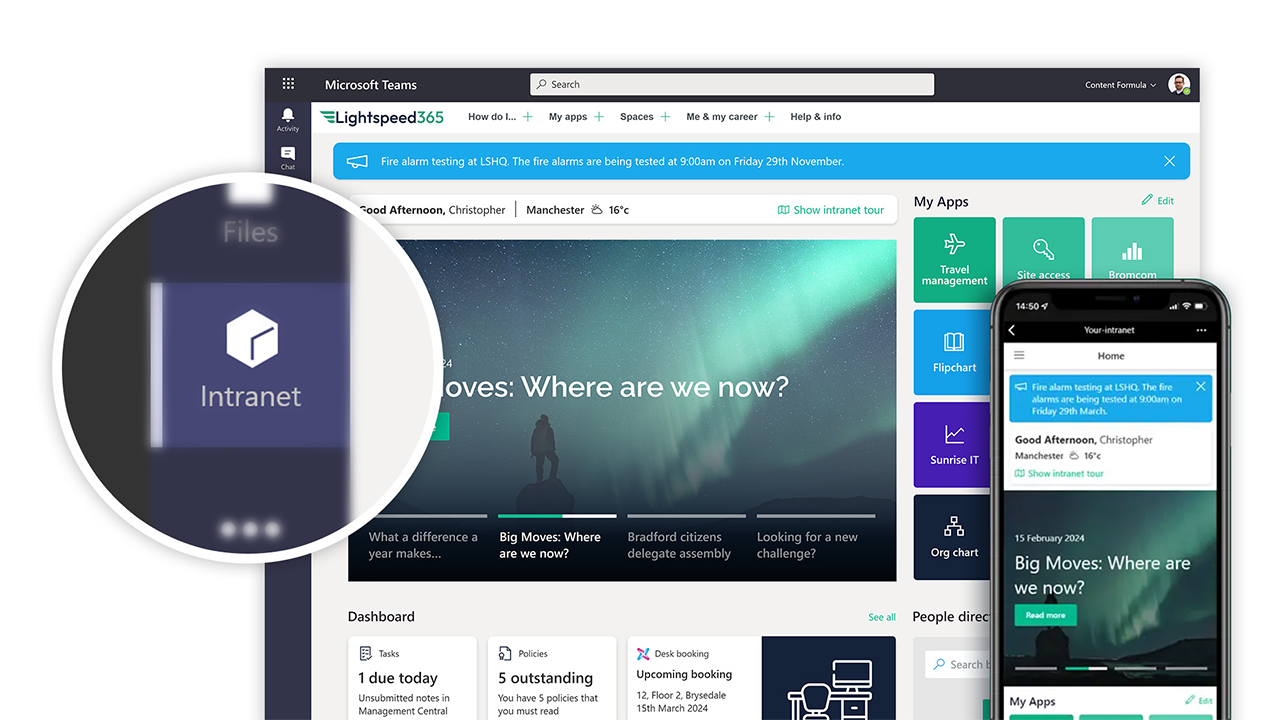 - Integrieren Sie Ihr Intranet in Teams mit der Lightspeed365 Teams-App.
