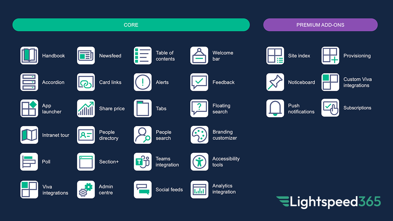 Lightspeed365 ermöglicht es Ihnen, schnell ein Best-Practice-SharePoint-Intranet mit hoher Akzeptanz zu starten. Wir bieten alle zusätzlichen Funktionen, die Sie zusätzlich zu SharePoint Online benötigen, zu einem erstaunlichen Preis.